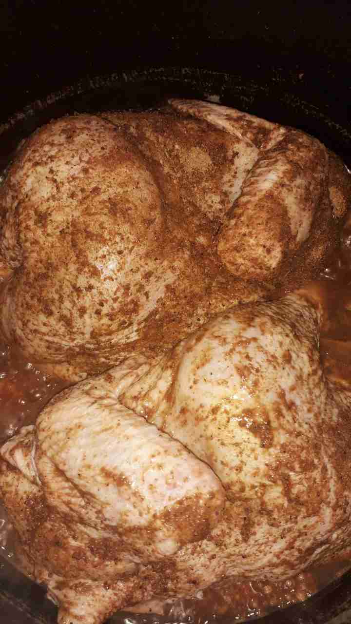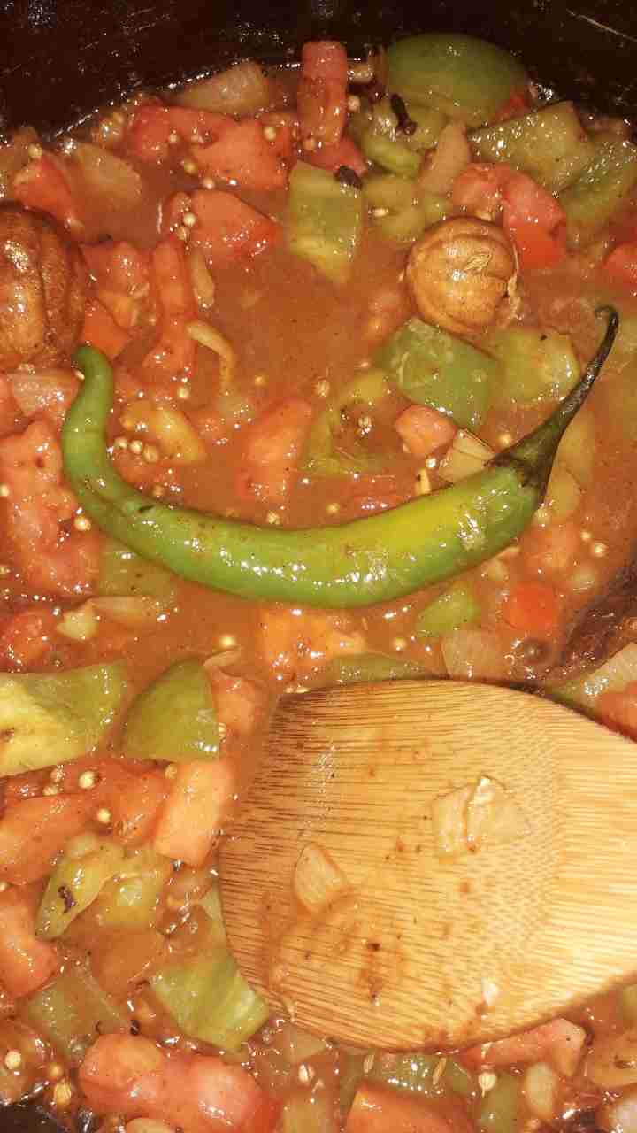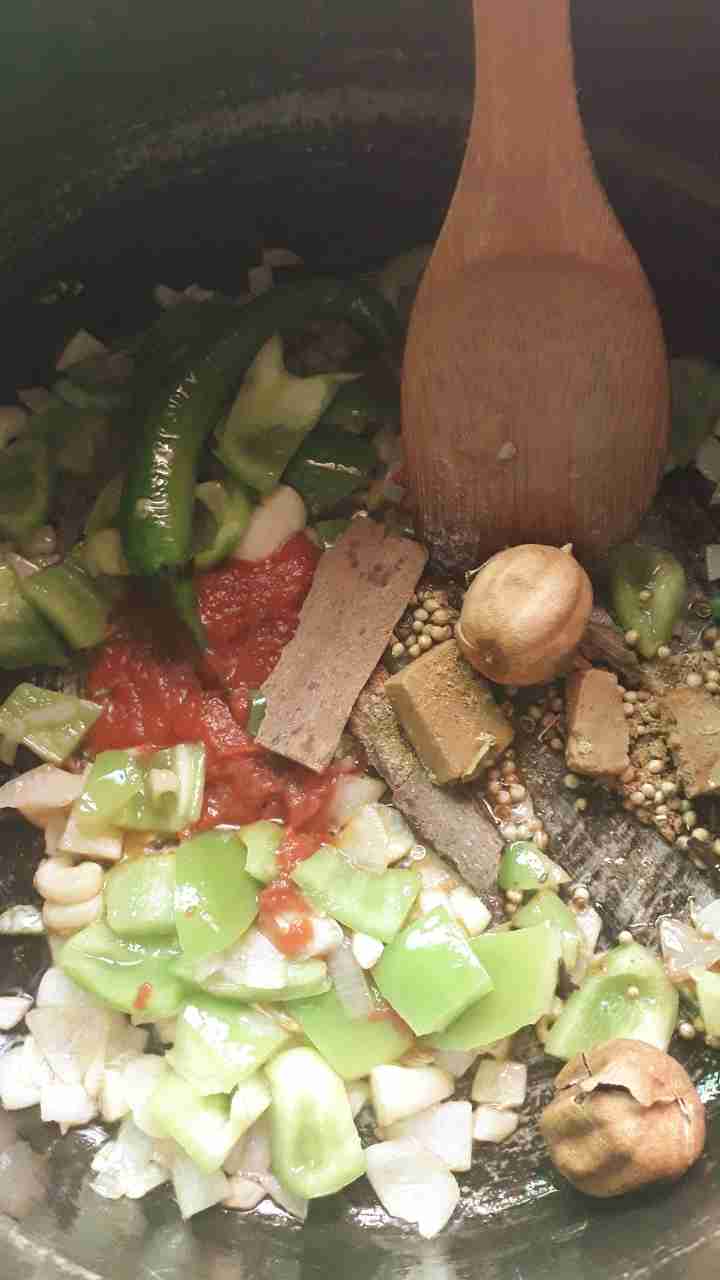 بنذبل البصل والثوم وبنضيف الفلفل الحلو بنحرك شوي وبعدها بنضيف ملعقة الصلصة والبهارات المذكورة (بهارات كبسة ،قرنفل،كزبرة حب ناشفة،عودين قرفة ،باكيت ماجي، 3حبات لومي ،ملح،) بحرك شوي وبرجع اضيف البندورة المقطعة بحرك منيح وبعدها بضيف كاستين مي وباكيت الكرميل (سكر مكرمل) ، بتركهم يغلو وبحط الجاجة فوق الخلطة بحيث المي تكون تحت الجاجة وبغطي الطنجرة وبخفف النار وبتركها عالهادي لحتى تستوي الجاجة ، واذا عندك طنجرة ضغط بكون اسرع الك
