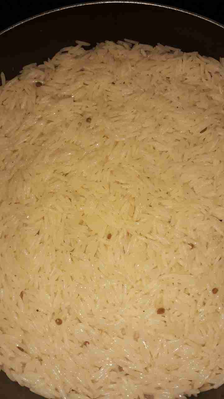 بنيجي للرز ، بغسلو وبسلقه بمي معها ملعقة صغيرة كركم وباكيت ماجي وملح وحبة لومي وعودين قرفة وورقتين غار واكمن حبة قرنفل وزيت ذرة ، بسلقه ثلث ارباع استوا وبعدها بصفي بدون مااغسلو