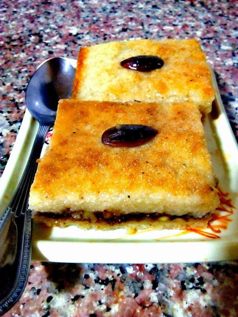 * هذه الوصفة بحاجة سميد خشن جدا وانا مالقيت اخشن من يلي بالصور.