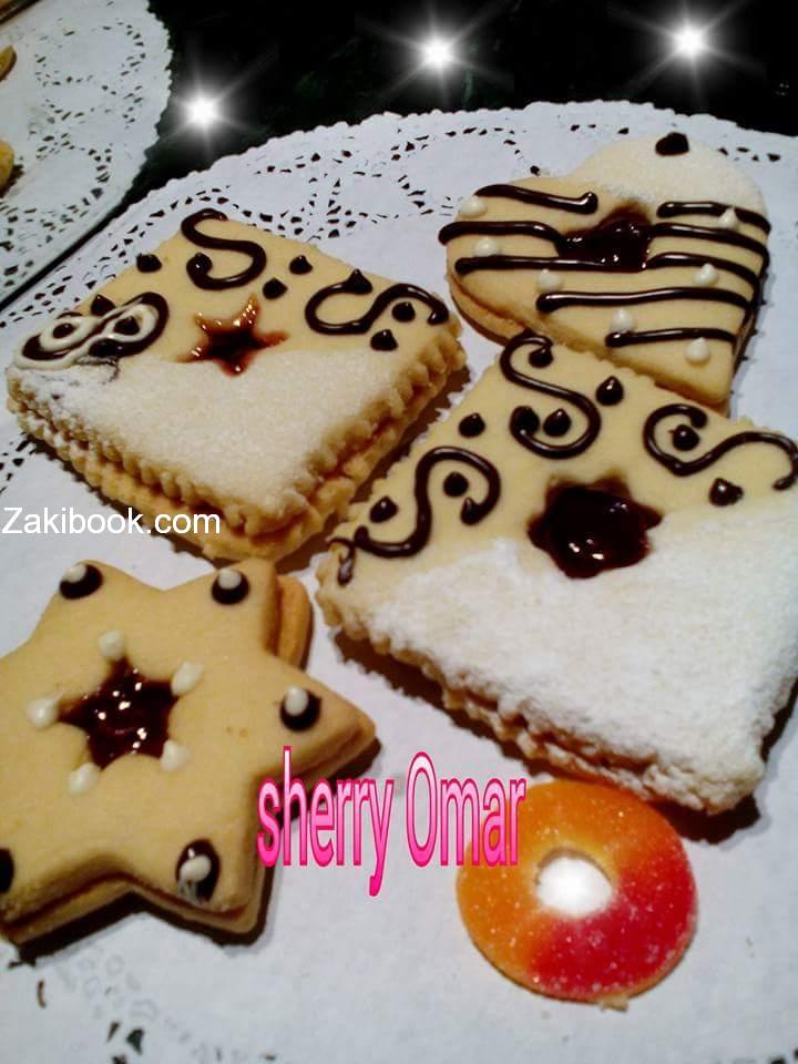 ونطلعها نفردها مابين ورقتين زبدة ونقطعة بالقطاعات ونحطة علي ورقة زبدة في الصينية واحدة مفرغة ونفس الشكل سليمة وندخلة الفرن من 10 -15 دقيقة يا دوب يورد من تحت ونطفي علية ولما يبرد نطلعة من الصينية وندهن واحدة بالمربي ونغطيها بالتانية ولو عايزة تحطي شكولاتة او سكر بودرة.
