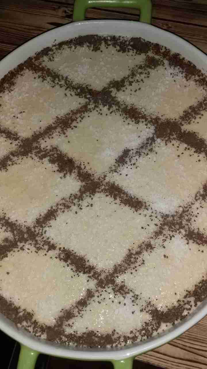 - للنكهات ڤانيلا وكاكاو بس انا هون حطيت حليب محمس بدل طبقة الكاكاو