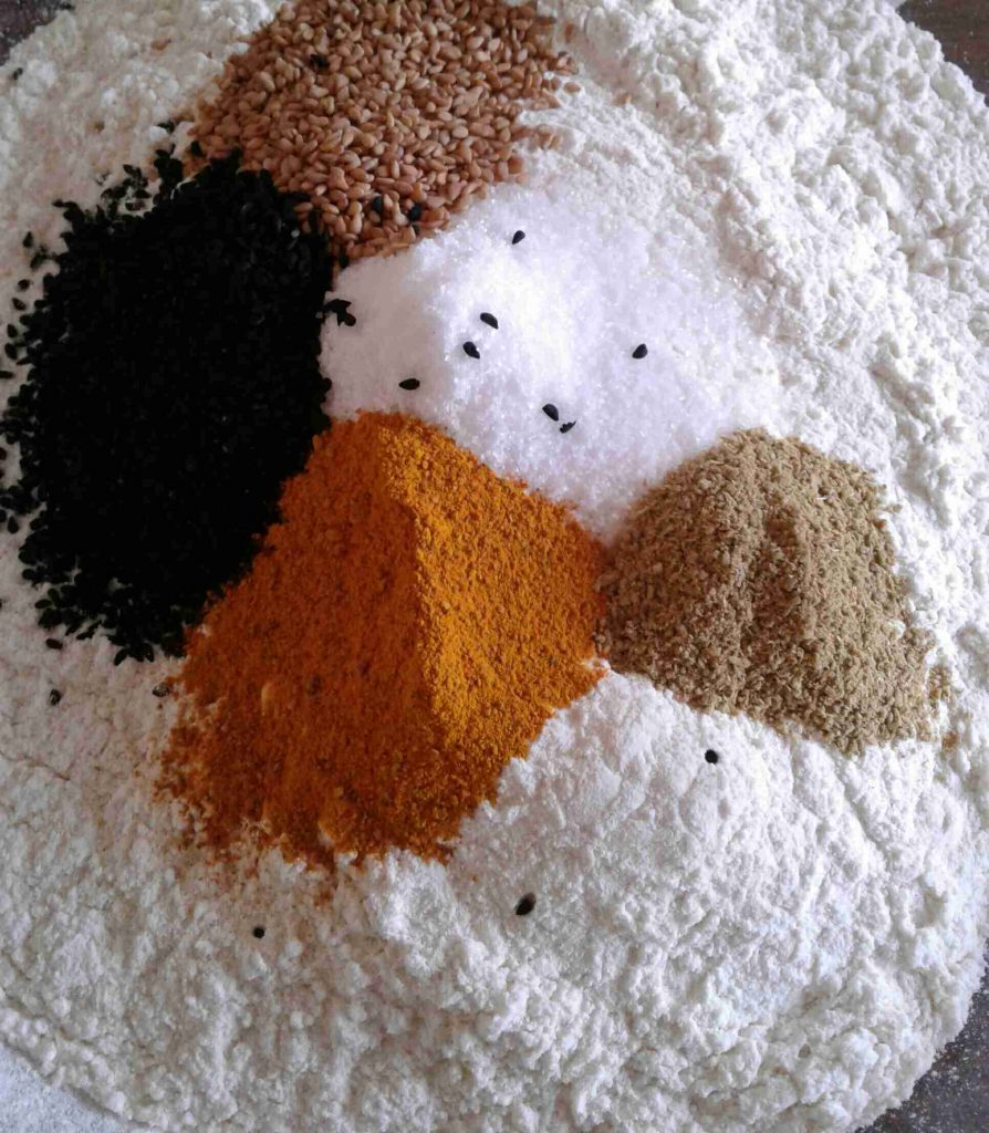 – نخلط جميع المكونات مع بعضها ونعجن بالماء الدافئ حتى تتكون لدينا عجينة متماسكة وشديدة نوعا ما .