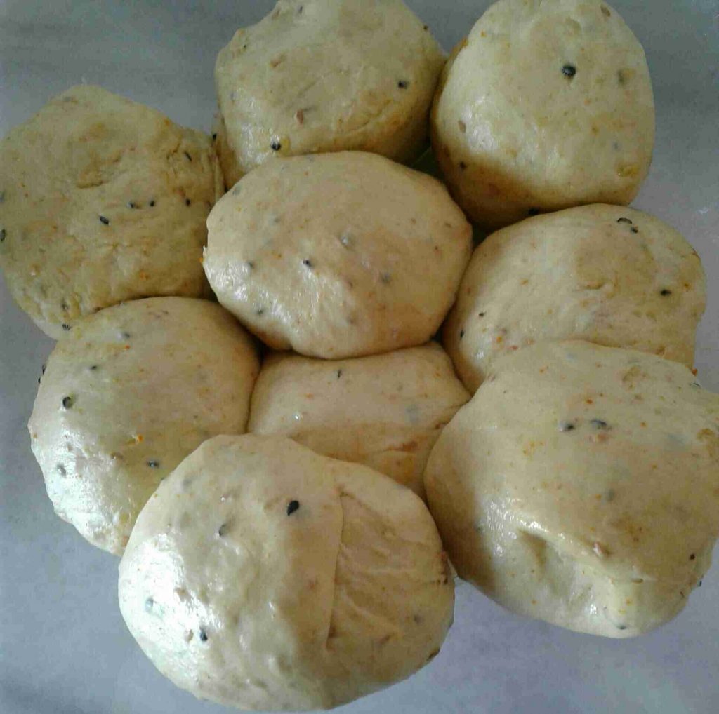 – نصنع كرات من العجين (مع مراعاة أن تكون كل كرة مناسبة لحجم الصينية عند الفرد) .