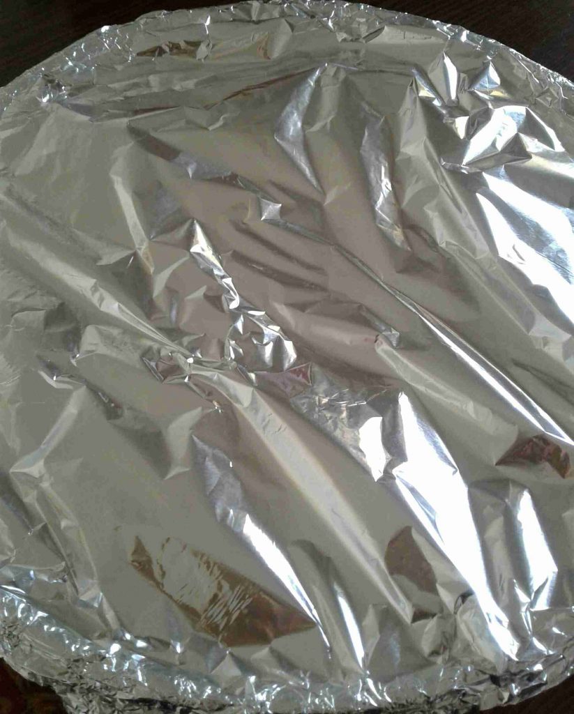 – نغلف الصينية بورق القصدير أو نغطيها بصينية أكبر .