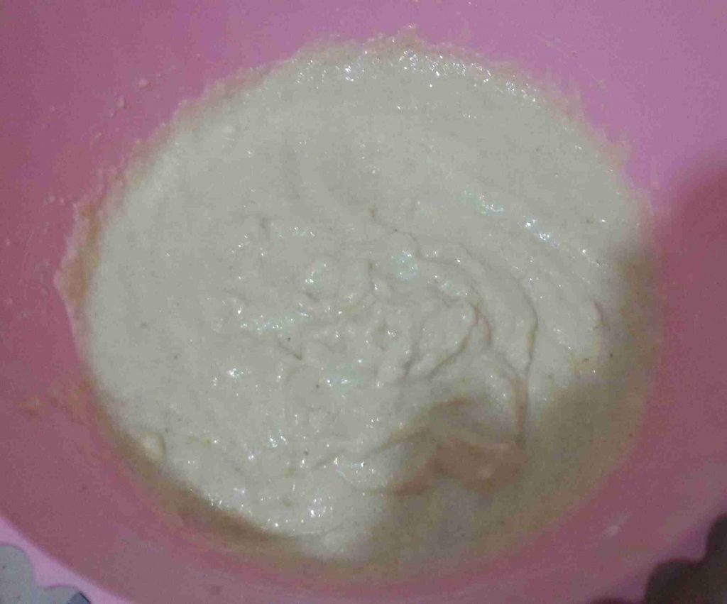 بعدين منضيف السميد ورشة الملح والفانيليا والبيكينغ باودر ومنخلطهم منيح