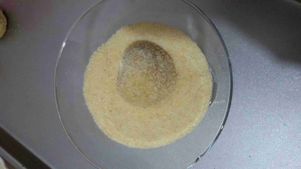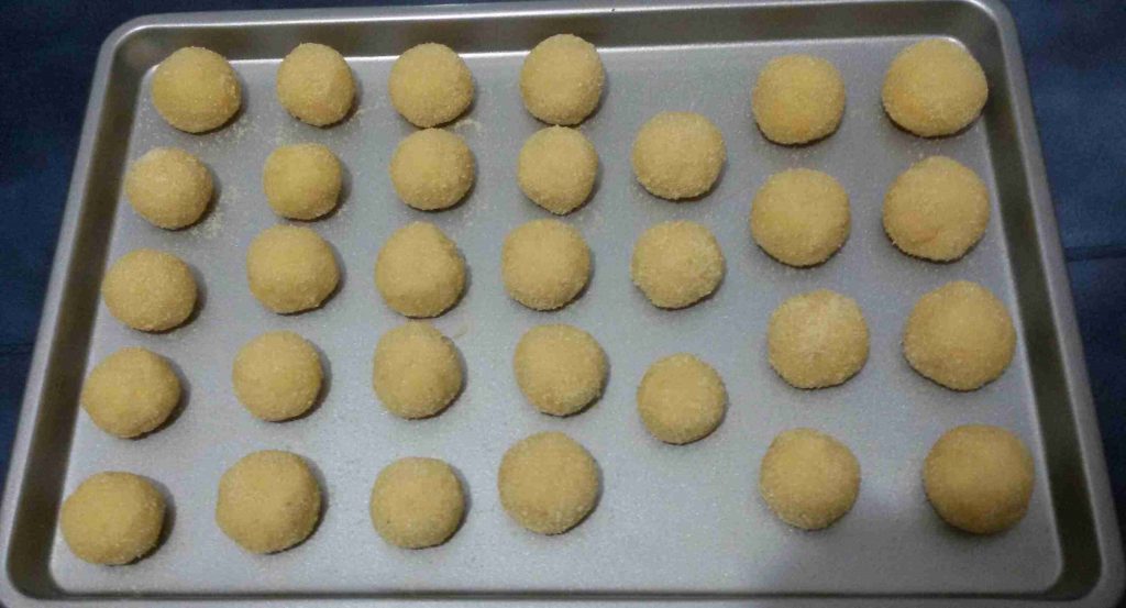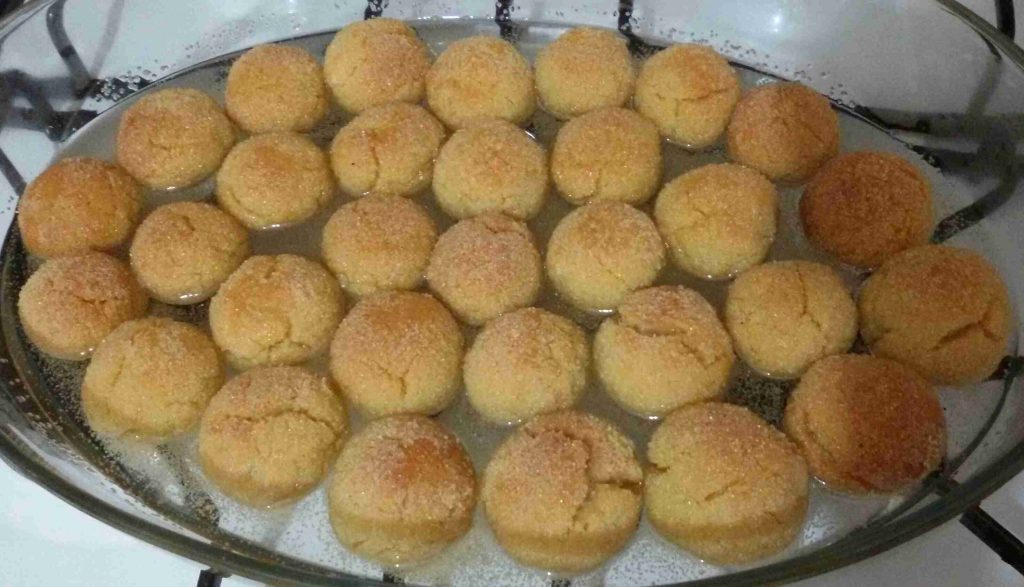 منغطيهم ومنتركهم عشر دقايق بعدين منضيف الطحين ومنخلط منيييح ليتشكل عنا عجينة منشكلها على شكل كرات بأحجام حسب الرغبة ومندحرجها بالسميد الناعم