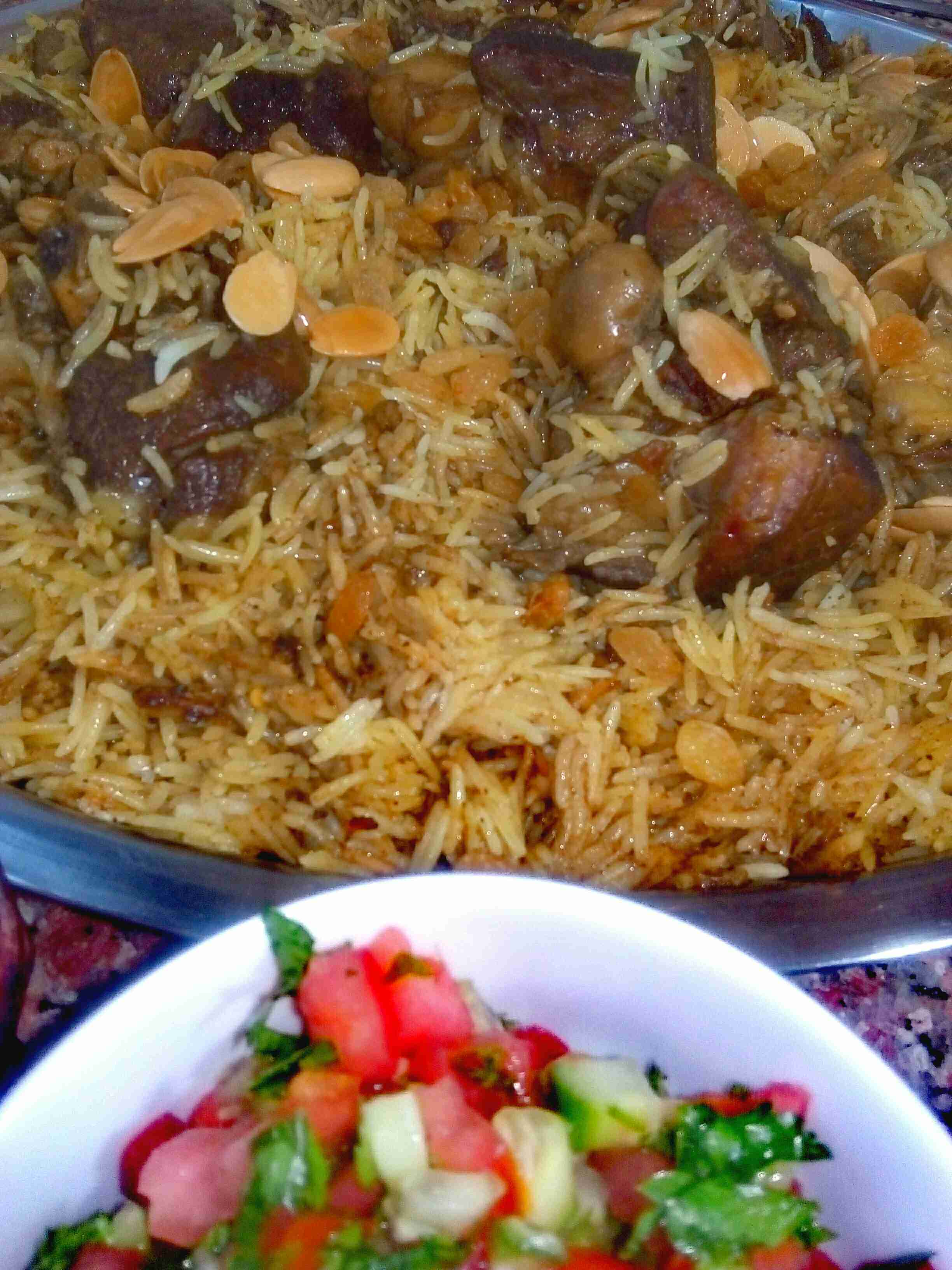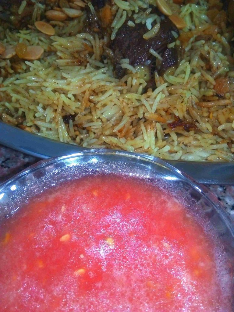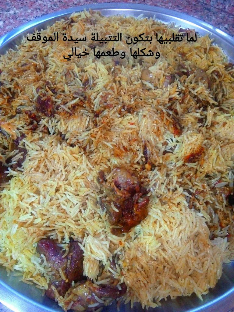 بتقلبي الطنجرة بجاط او سدر وطبعا بتكون مستوية ومتفلفلة وكلشي تمام وطعمتها ولا اروع من هيك،زينيها باللوز والزبيب و قدمي معها سلطة ولبن وصلصة الدقوس يلي لا غنى عنها بكل الاكلات الخليجية.
