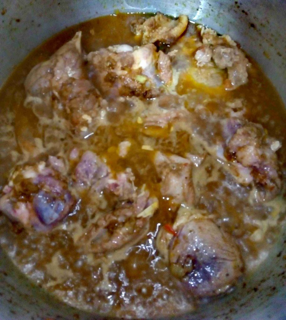 في هذه المرحلة بنكون منظفين اللحمة ومجهزينها، وبنبدأ نقلي البصلة في طنجرة الضغط نفسها يلي رح تكمل فيها كل الطبخة، بنقلي البصلة بزيت ذرة وبعدها الثوم المهروس والبندورة والفلفل الحار ، وبس يتذبلوا شوي بنضيف البهارات تتقلى معهم لحتى تفوح ريحتها وبعدين بنحط اللحمة وبنقلبها معه بس لمدة خمس دقايق وبعدين بنضيف مي مغليه مش كثير بس شوي يعني بتضل اللحمة مبينة ماتغمريها مي مابدنا نسلقها سلق، لا تضيفي ملح في هذه المرحلة .