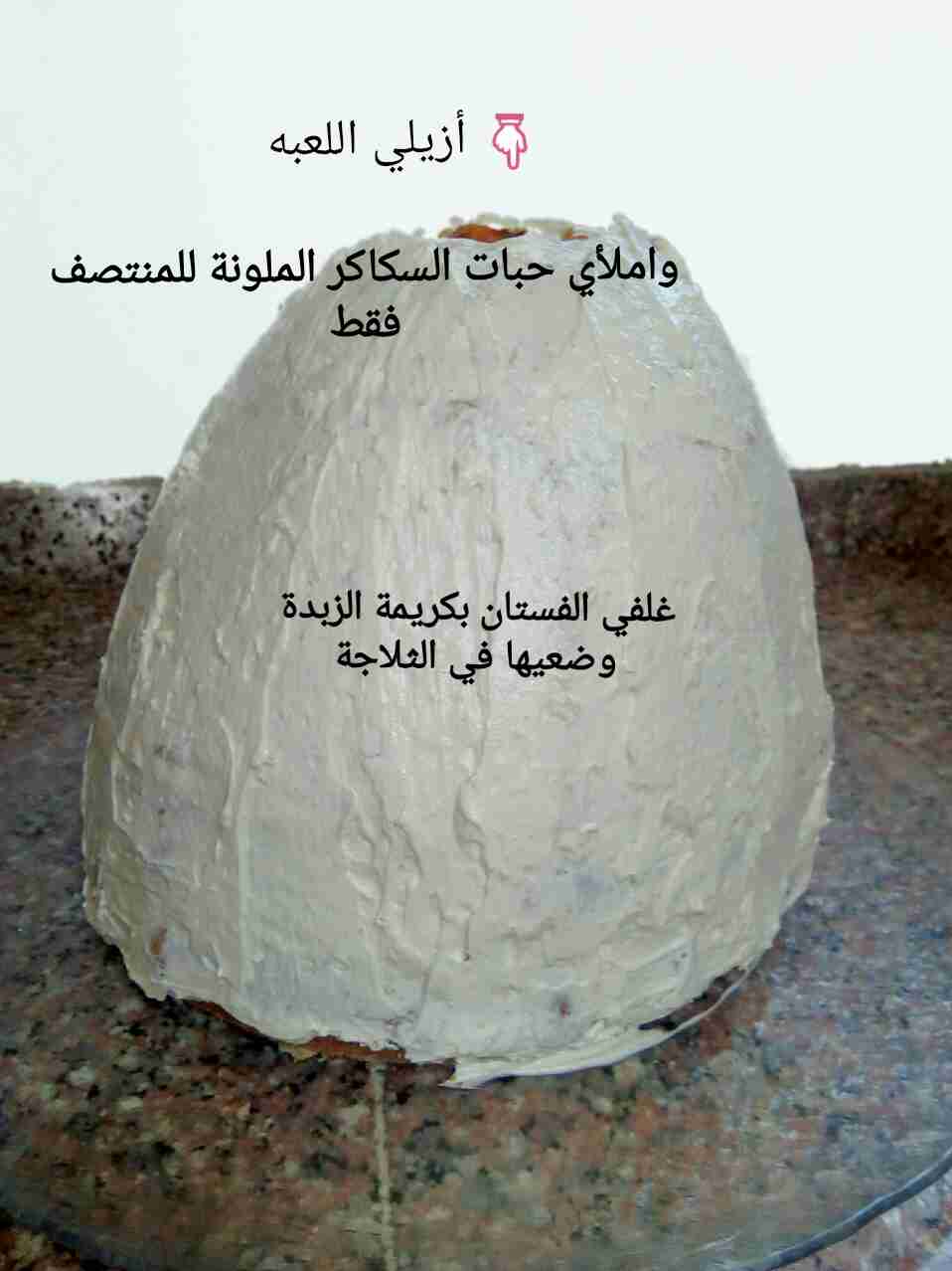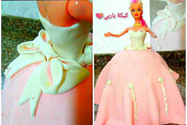شيلي اللعبه خلص يعطيها العافيه خلص دورها، وادهني كل الفستان بكريمة الزبدة منيح ودخليها الثلاجة تبرد ضرورية هالخطوة.