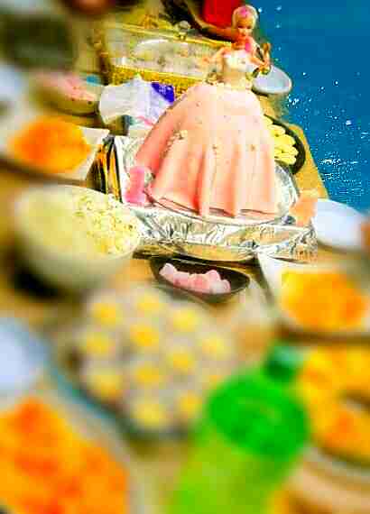 حضري اللعبه اللي عندك ولفي عليها نايلون تغليف لحد الخصر بلاش تلامس الاكل افضل.