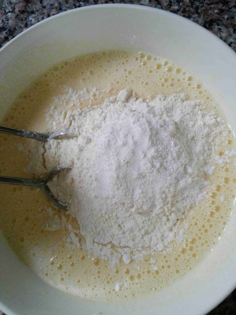 & ببلش بوضع الطحين عالخليط واخلط وكل ما أضيف طحين بضيف معه من كاسة الحليب السائل شوي لحتى أخلص الكميه من الطحين والحليب