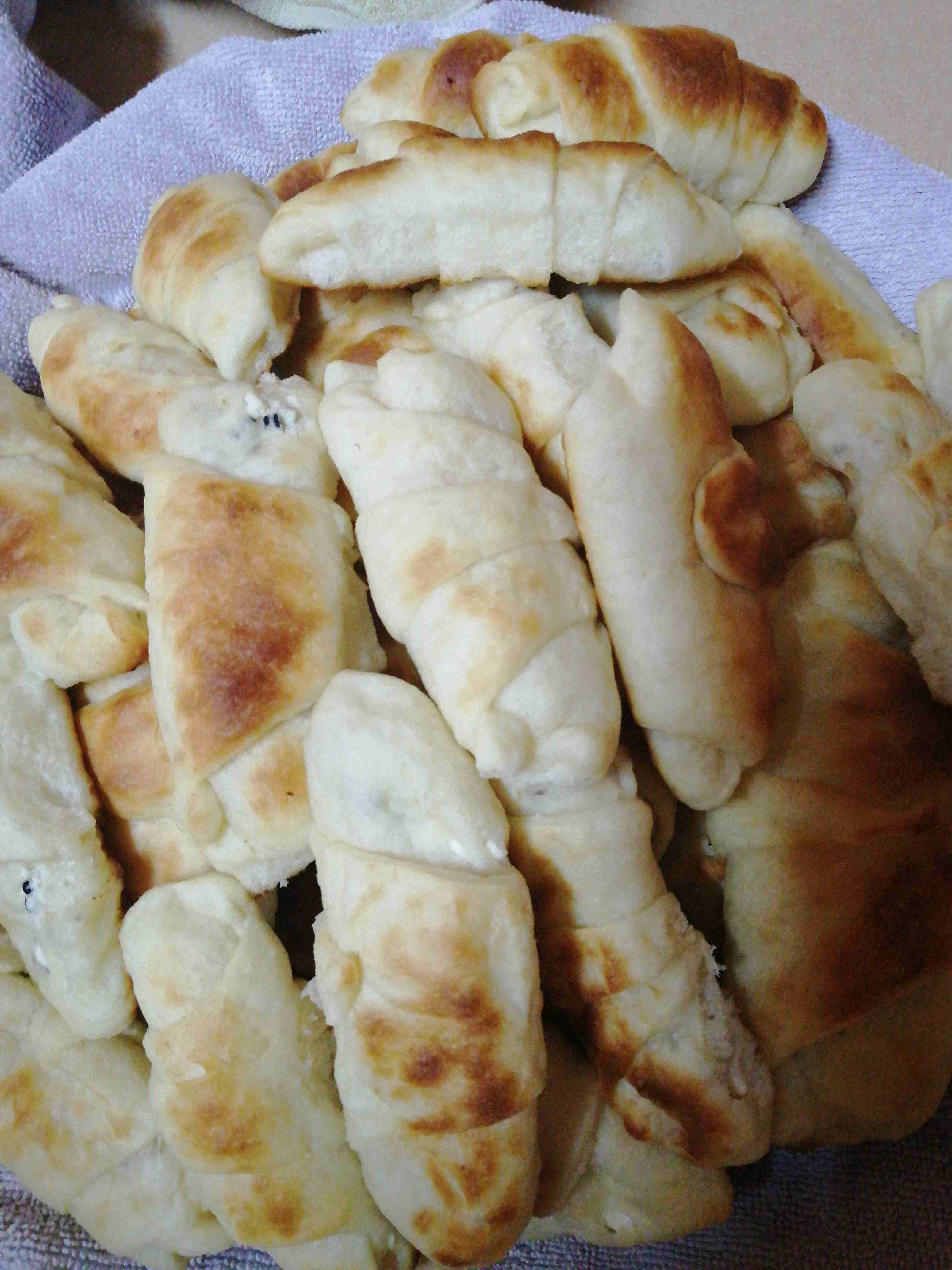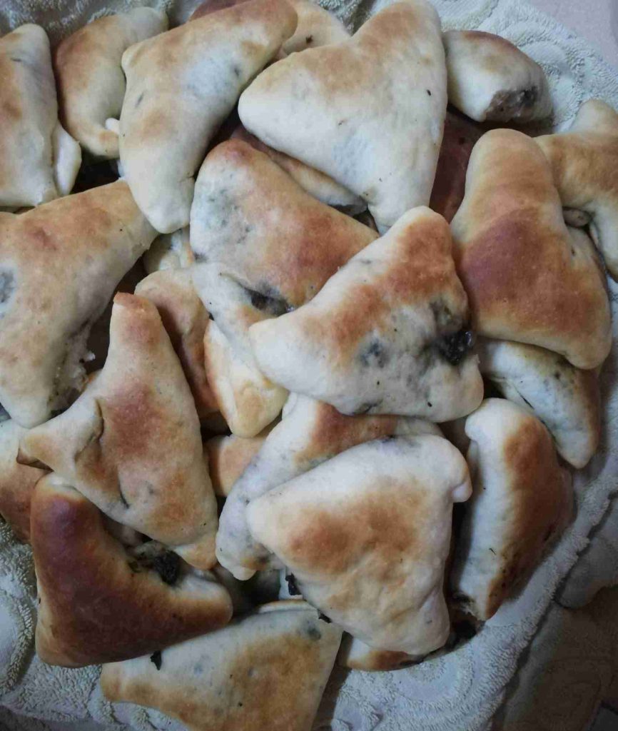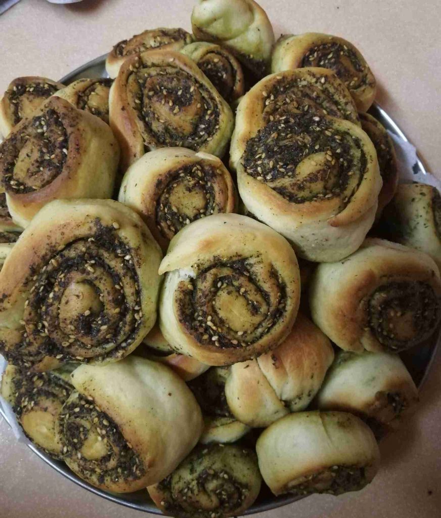 نضع جميع المقادير مع بعض في وعاء عميق ونضيف الماء بالتدريج حتى الحصول على عجينه لينه ومتماسكه في النهايه نضيف لها فنجان قهوة من زيت الزيتون ونتركها تخمر مده 10 دقائق إلى 15 الدقيقه ثم تقطع حسب الرغبه وتحشى بالحشوه المرغوبه جبنه. زعتر. سبانخ