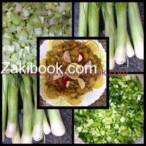 أول شيء بتنظفي الكرات وتفصلي الأبيض عن الأخضر ويغسل ثم يفرم كل واحد لحاله، كما هو موضح بالصورة وتضعين زيت زيتون بطنجرة وتقلي فيه قطع اللحم أولا ، وتضيفين له مفروم الكرات الأبيض ويقلى جيدا مع التحريك المستمر ، حتى يصبح ذهبي اللون، بعدها تضفين مفروم الكرات الأخضر ، ويحرك مع إظافة البهارات :ملح وفلفل وبابريكا وكوب ماء كبير ويترك مغطى على نار هادئة حتى ينضج ، ثم يزين بالمقدونس المفروم ودوائر الحامض .