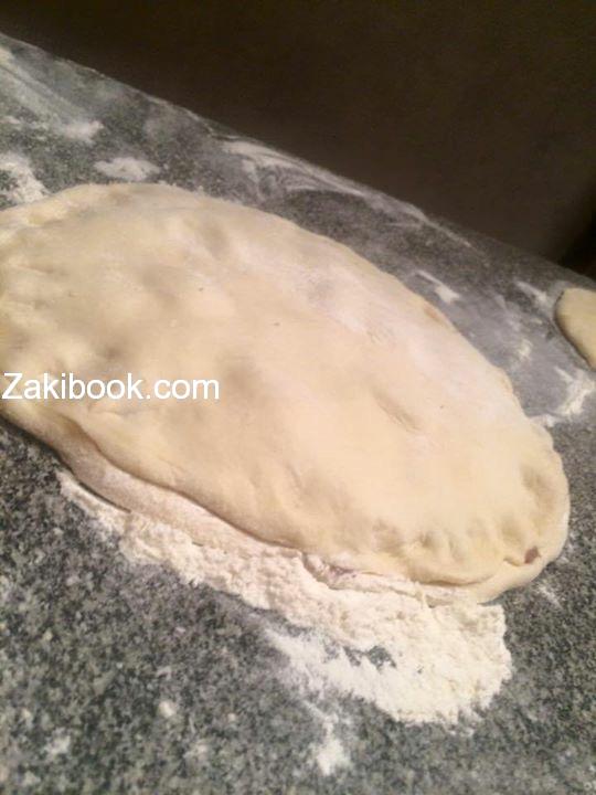 بعجن كيلو طحين مع بيضه واربع ملاعق حليب بودره وملعقه خميره فوريه بعجن عجينة يابسه شويه وبكون مجهزه لحم مفروم متبل بصل وطماطم وبهارات بس كميه بصل كتيره شويه مش زي بصل الكفته