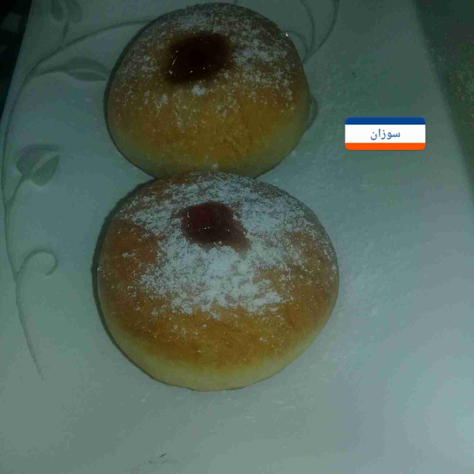 بنخلط السكر والبيض والفانيلا السائله حتى نحصل على خليط كريمي ثم نقوم بنخل الطحين ونضع عليه الخميره والباكم بودر ورشه الملح ونضيفه بالتدريج لخليط البيض ونعجن ثم نضيف الخل والزيت و كوب المي انا استخدمت المي بدل الحليب ونعجن لمده عشر دقايق او اكثر حتى نحصل على عجينه مطاطيه مش جامده ولا رخوه ثم نقوم بتغطيتها بنايلون لتختمرلمده ساعه ونص بالشتاء غير عن بالصيف ساعه وبعد ان تختمر بنقوم بفردها على طاوله العمل ونرش طحين ونفردها ونقوم بتقطيعها بقطاعه دائريه الشكل وبعدها نضعها في صينيه مرشوشه بطحين ونخليها تختمر اربعين دقيقه اضافيه مع تغطيه وجها بفوطه مطبخ ناشفه .