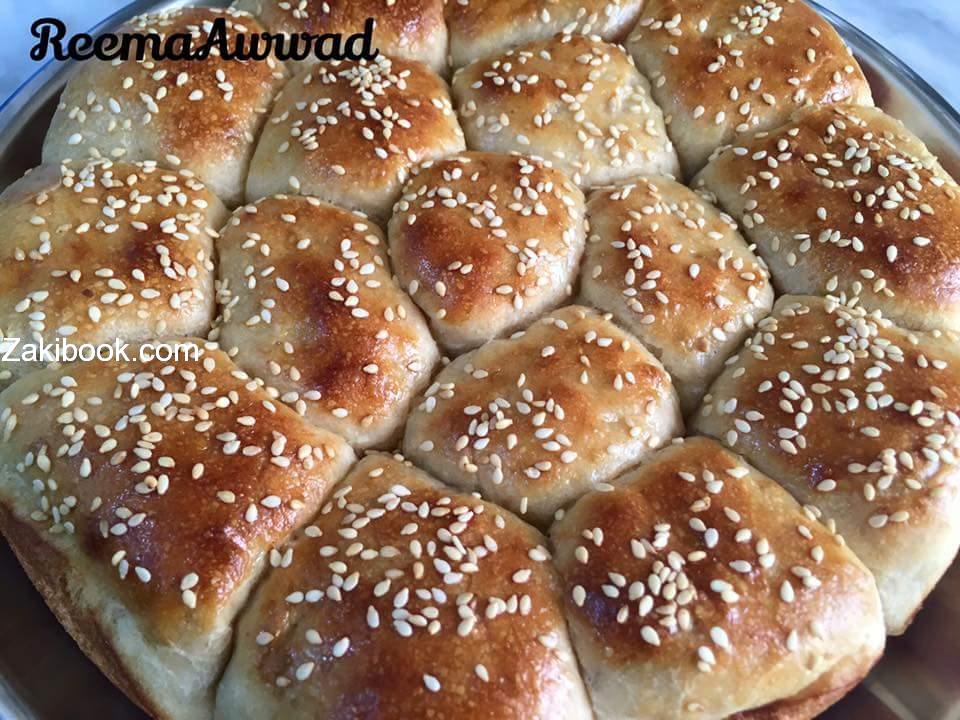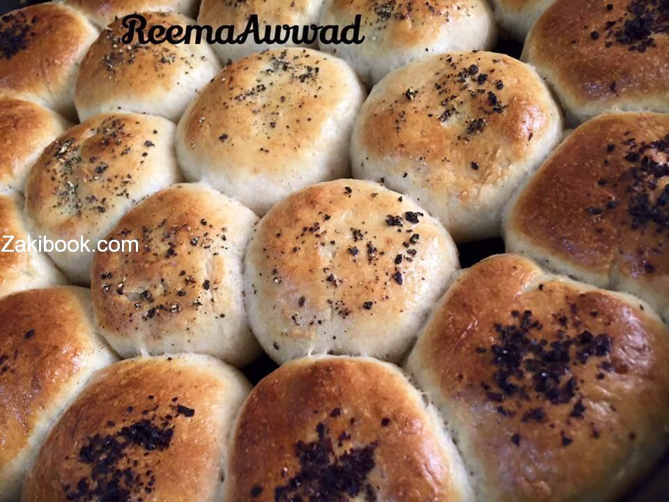 تخلط المقادير الجافة معا ثم الزيت واللبن بالعجن مع إضافة الماء بالتدريج حتى تتكون عجينة متماسكة ملساء ونغطيها ونتركها في مكان دافئ لمدة ساعة حتى تخمر