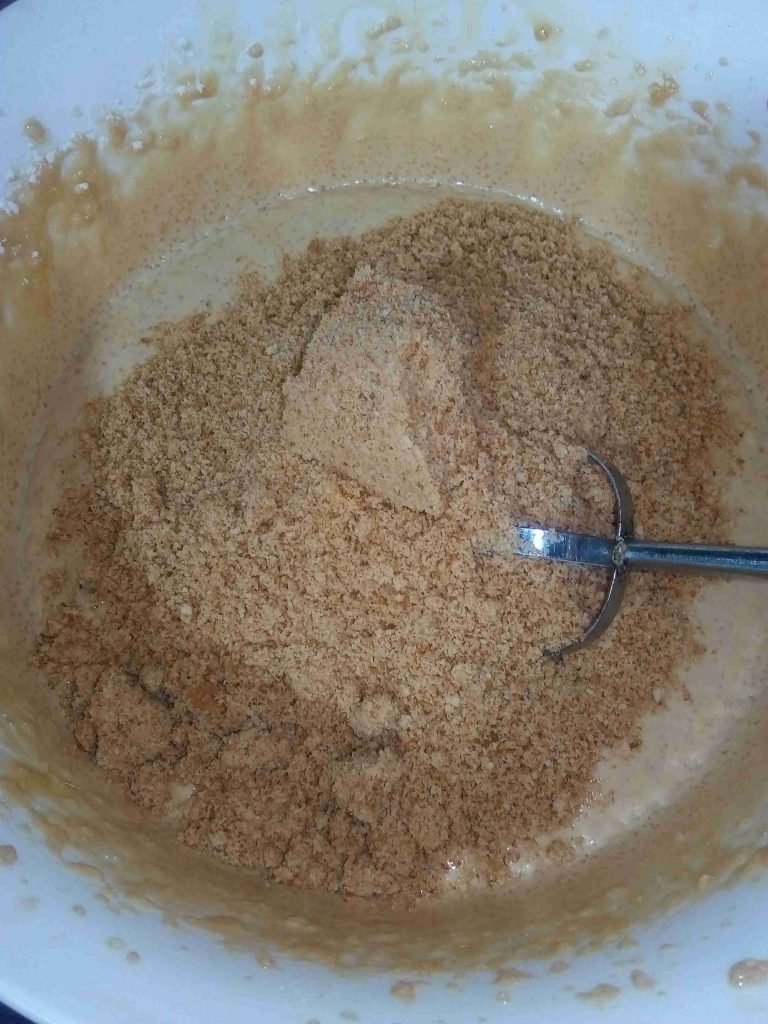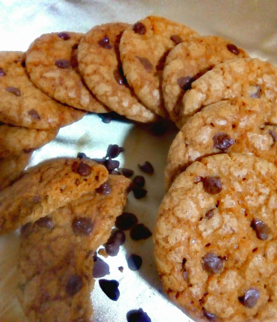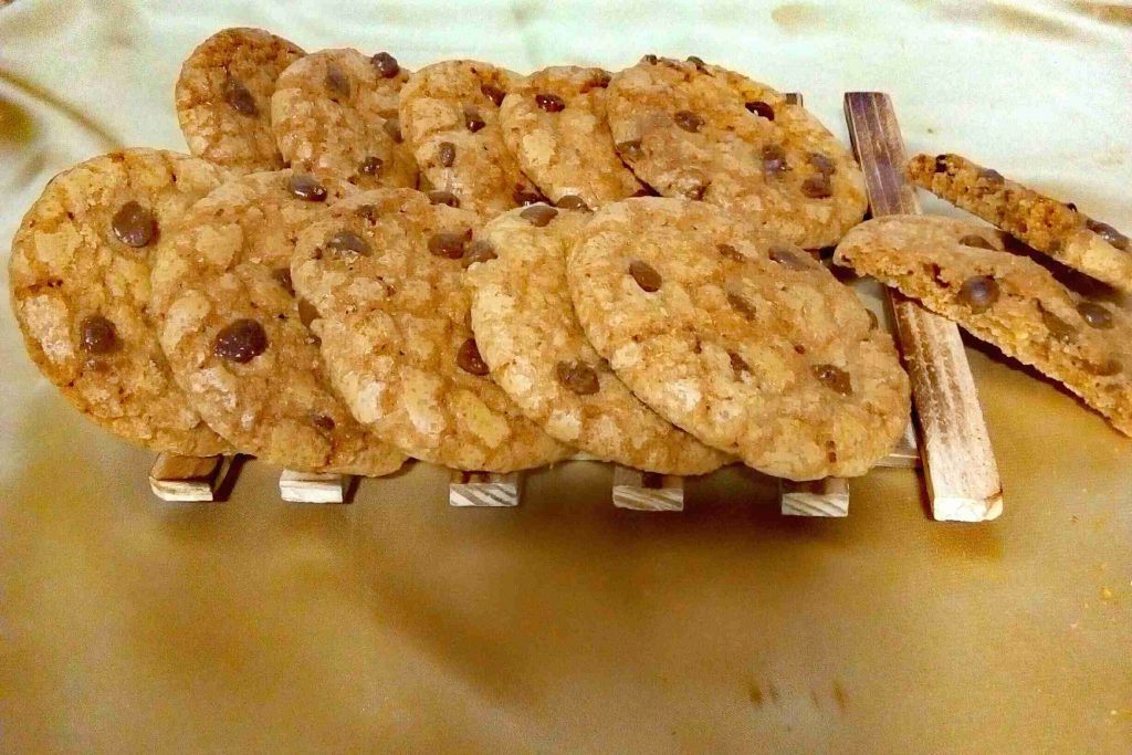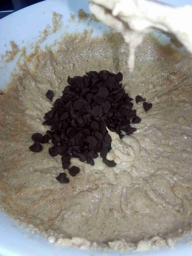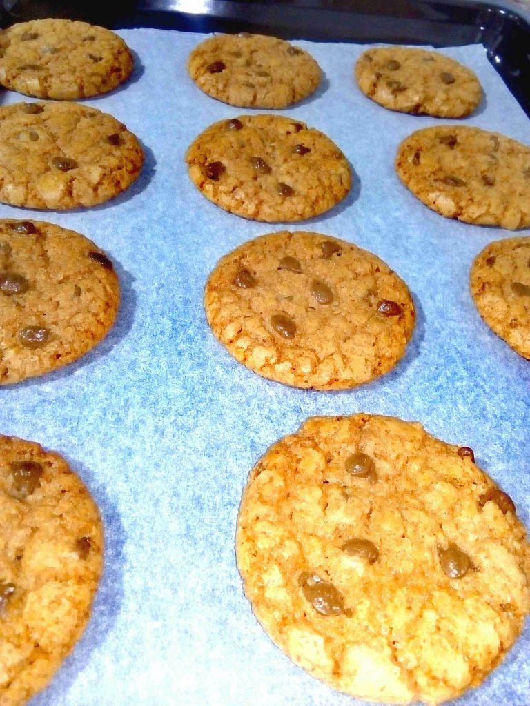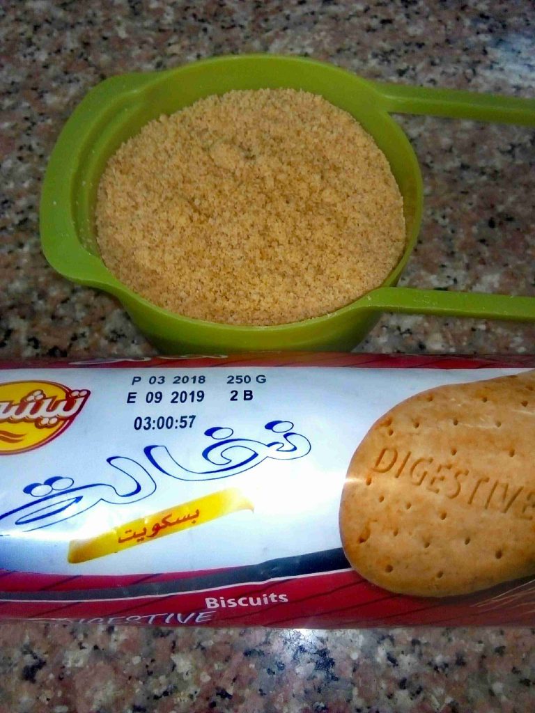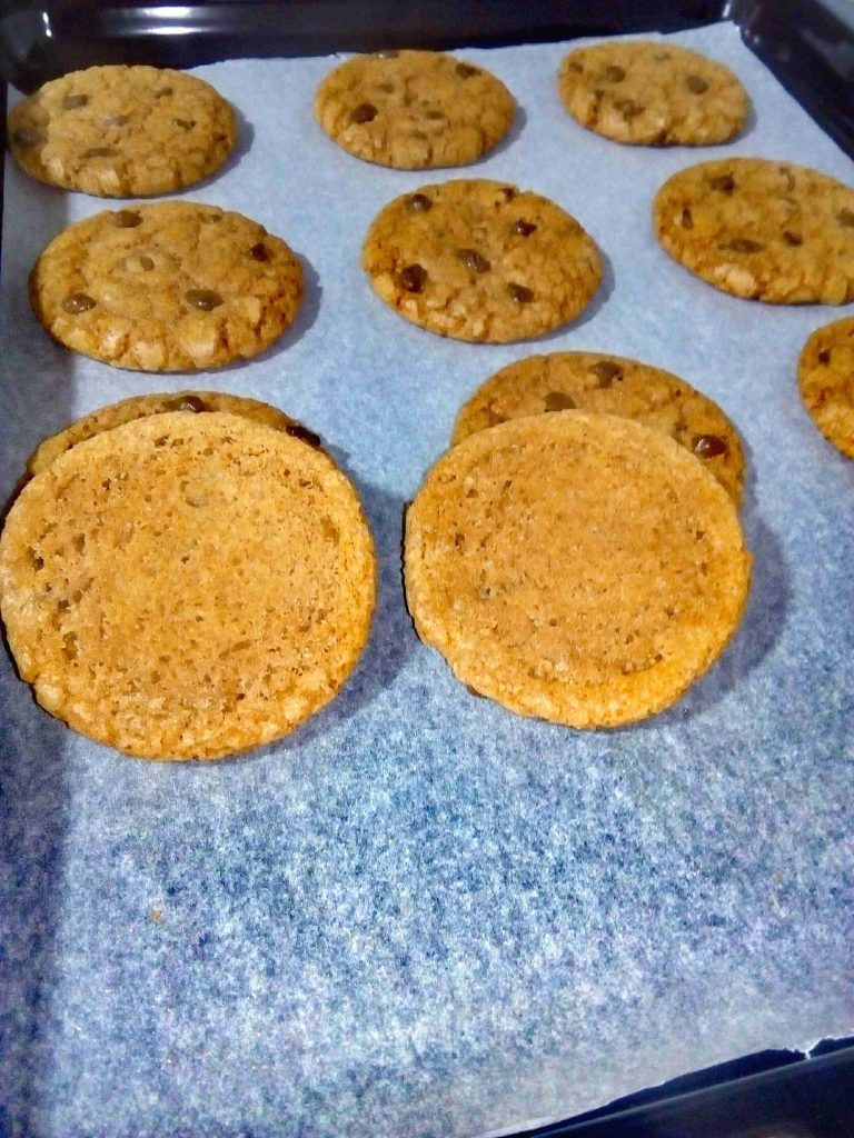 بنخلط البيضة مع السكر البني وملعقة الفانيلا وبنخلط لحتى يذوب السكر ويختفي تماما بنضيف الزبدة المذابة وبنتابع الخلط وبعدها ملعقة البيكينج ونصف ملعقة الكربونة وبنتابع الخلط ، وبعدين البسكويت المطحون وبعده الشوكليت شيبس .