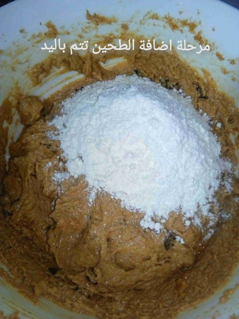 الان الطحين بنضيفه بالتدريج وبنخلط باليد لحتى تقثل العجينة ، بنغطيها وبنحطها بالثلاجة نص ساعة.