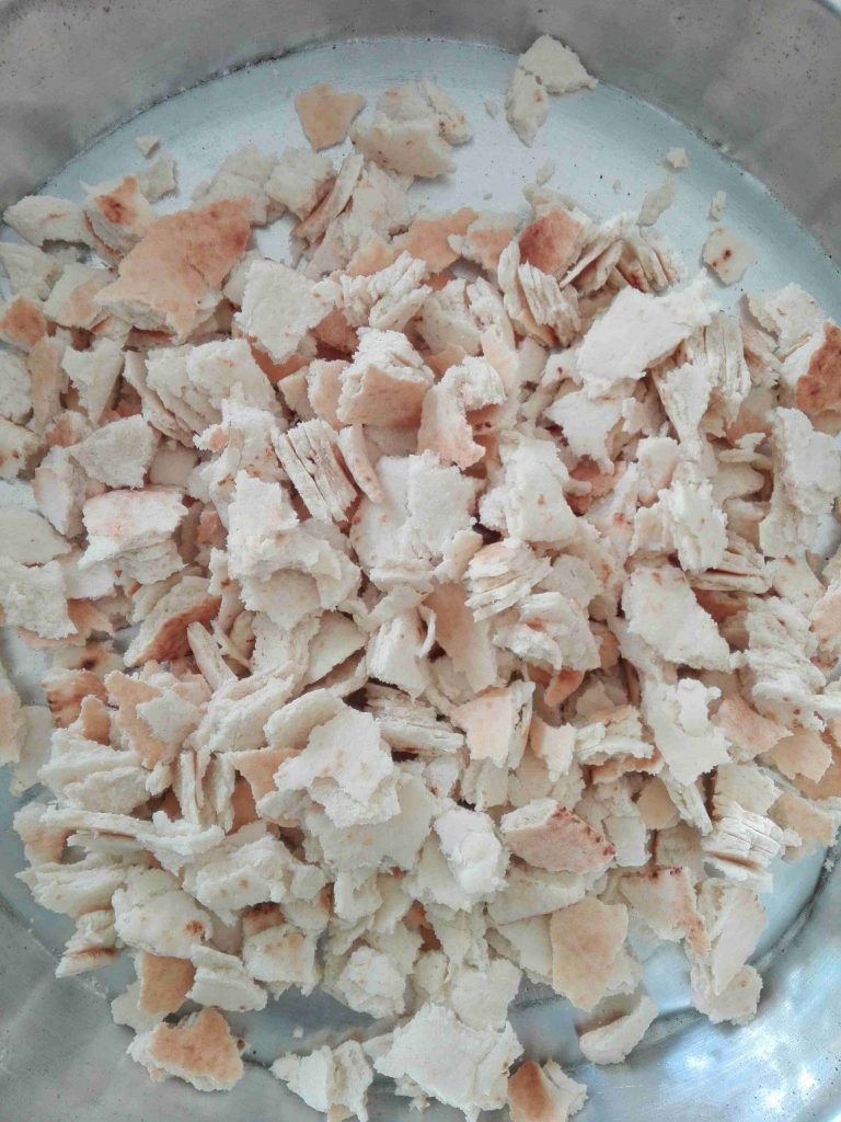 & بنبلش بتقطيع الخبز وبنضع عليه شوية زيت زيتون وبنفركهم سواا ..وبنحمرهم بالفرن …