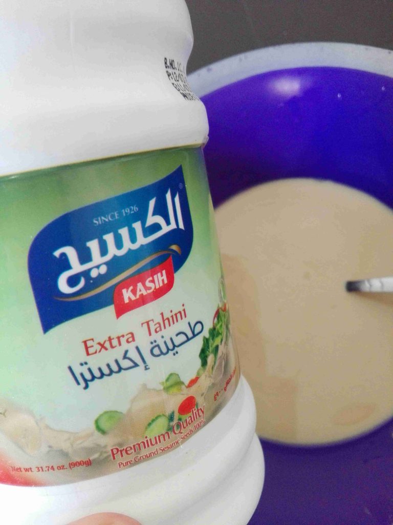 & لما يكون عندي الحمص قرب يستوي باخذ من ميته وبضعها عالخبز مو كتير المي يعني لحتى يتبلبل وبغطيه وبترك الخبز يشرب المي …وخلال هالفتره وهو الخبز منقوع والحمص عالغاز ،،،ببلش اعمل الطحينيه راح نحتاج كميه من الطحينيه …حسب كمية الفته ..استخدمنا بعمل الفته نص علبة كبيره …وضفنالها عصير الليمون ..حسب الرغبه ..استخدمنا تلات لاربع حبات عصير