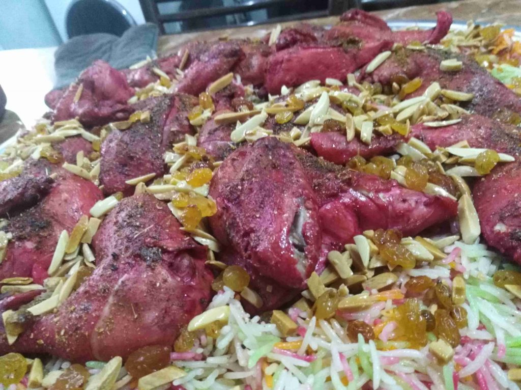 بنفرد الرز وبنحط الدجاج عالوجه وبنزين باللوز والزبيب