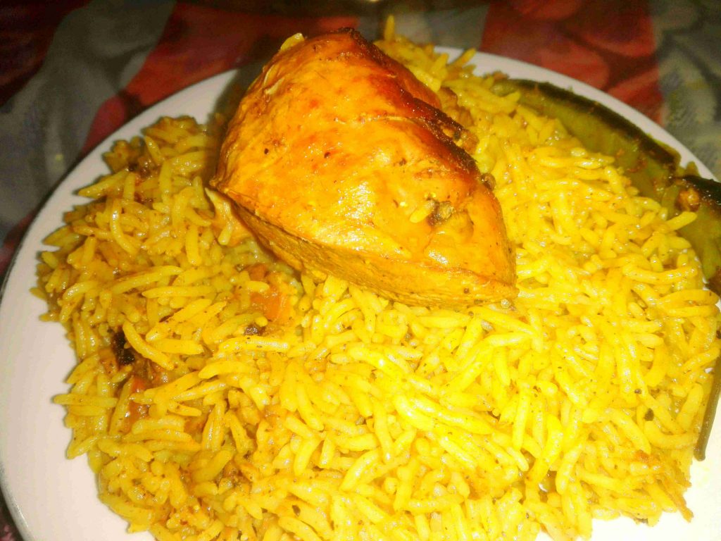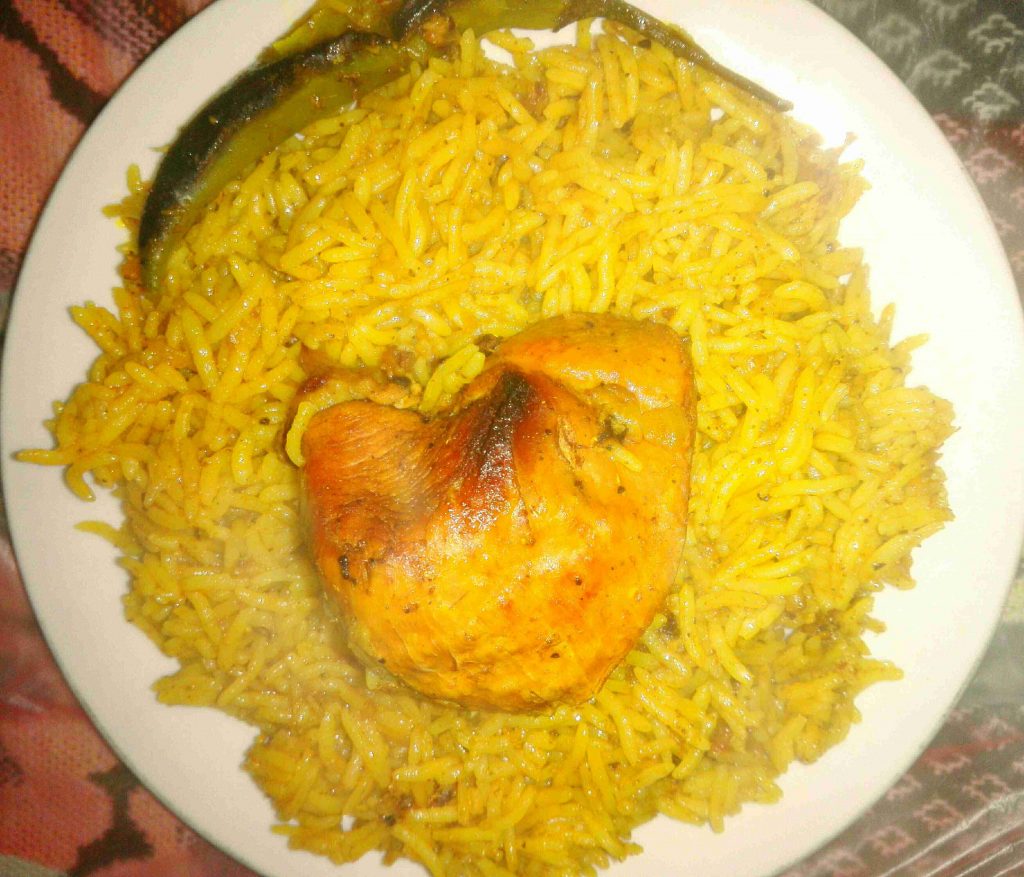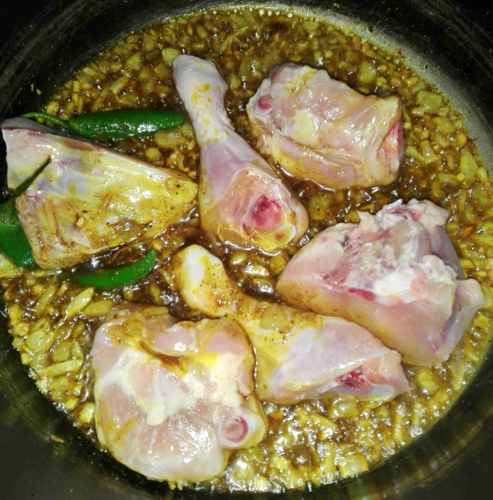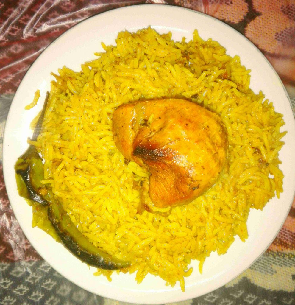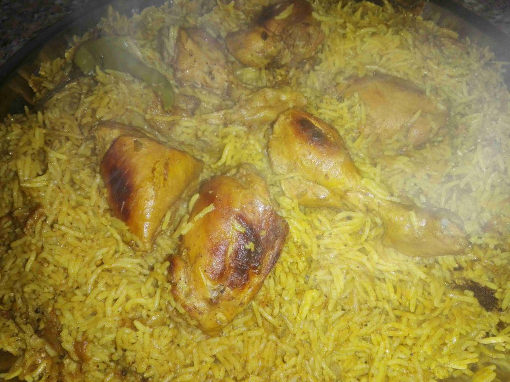 & ومن بعد ما يستوي الدجاج …بكون ناقعه أرز بسمتي بغسله وبصفيه وبضيفه فوق الدجاج بدون تحريك وبشوف المي يلي عالدجاج اذا ما غمرت الارز بزيده مي لحتى ينغمر ..وبخليه لحتى يغلي بوطي النار تحته للأخر وبتركه يستوي عالراحته …وبحاول انه ما احرك الارز كتير من بعد ما تتنشف ميته لانه بتكسر