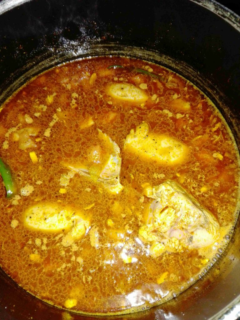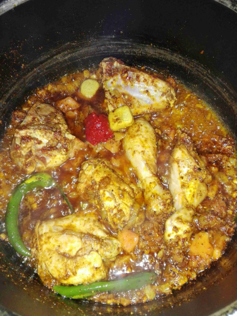 & وبعد هيك بضيف الدجاج وبقليه مع الخضار والبهارات عالنار عاليه ..وبضيف بندوره مفرومه بكيت ماجي ومعلقتين صلصة بندوره ومعلقتين لبن وبحركهم سوا ولما يخلصو تقلايه بغمر الدجاج بالمي يعني مو كتير وبخليهم يغلو عالنار وسط…