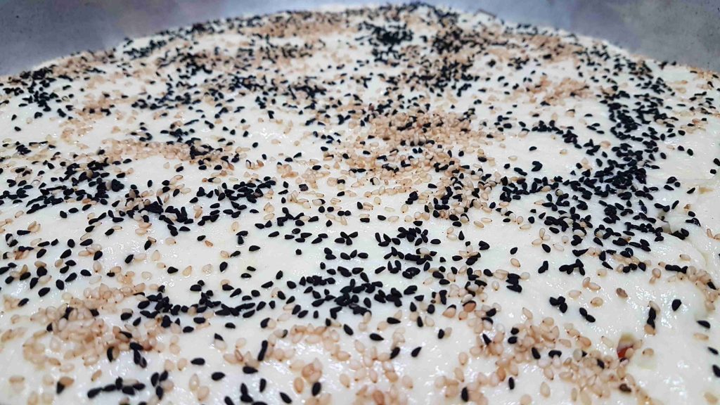 القليل من السمسم المحمص وحبة البركة لتزيين الوجه.