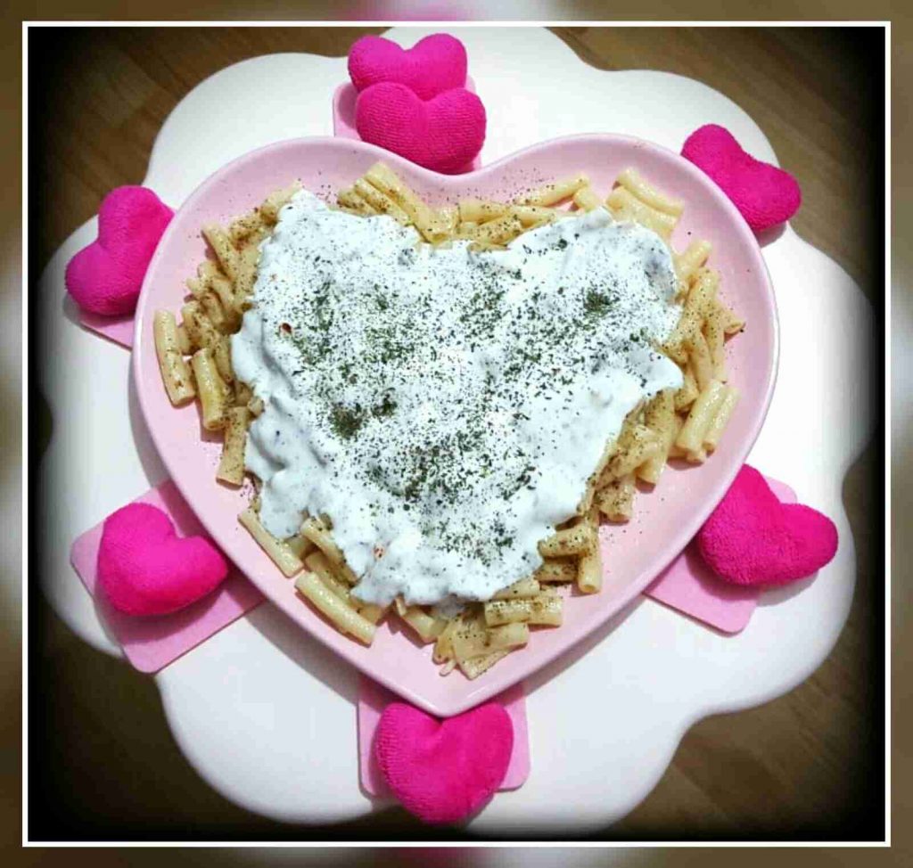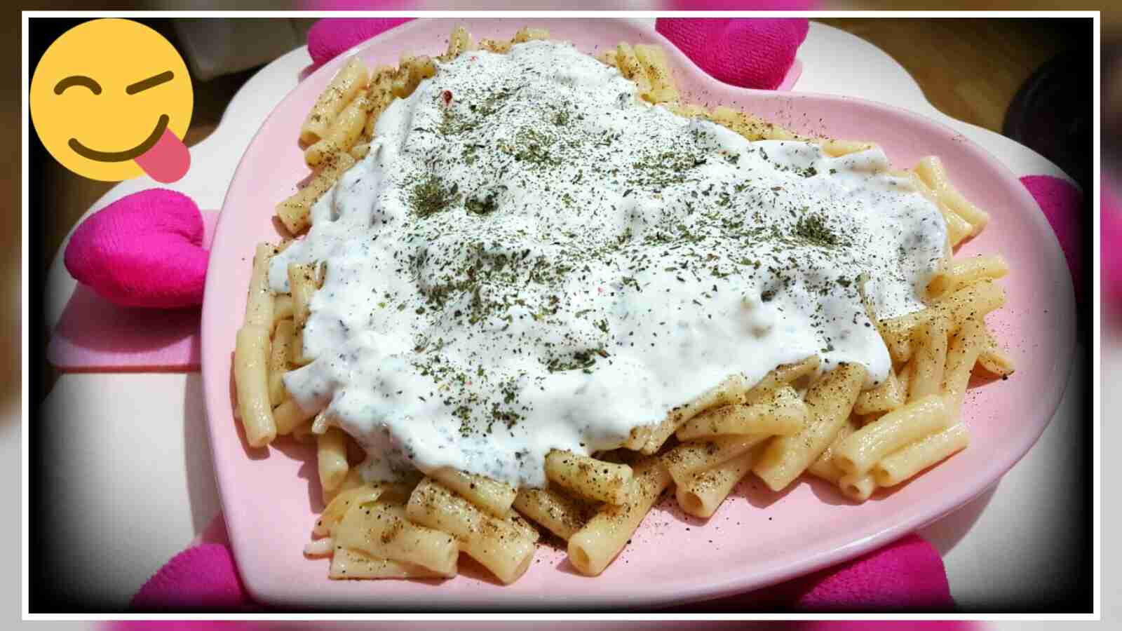 منسلق المعكرونة مع شوية زيت وملح وأثناء السلق منعمل خلطة اللبن اللي هية عبارة عن خلط المكونات كلها مع بعض ههههههه ومنحطا بالبراد لبين ماتجهز المعكرونة ووقت نصب المعكرنة منحط صلصة اللبن عليها..