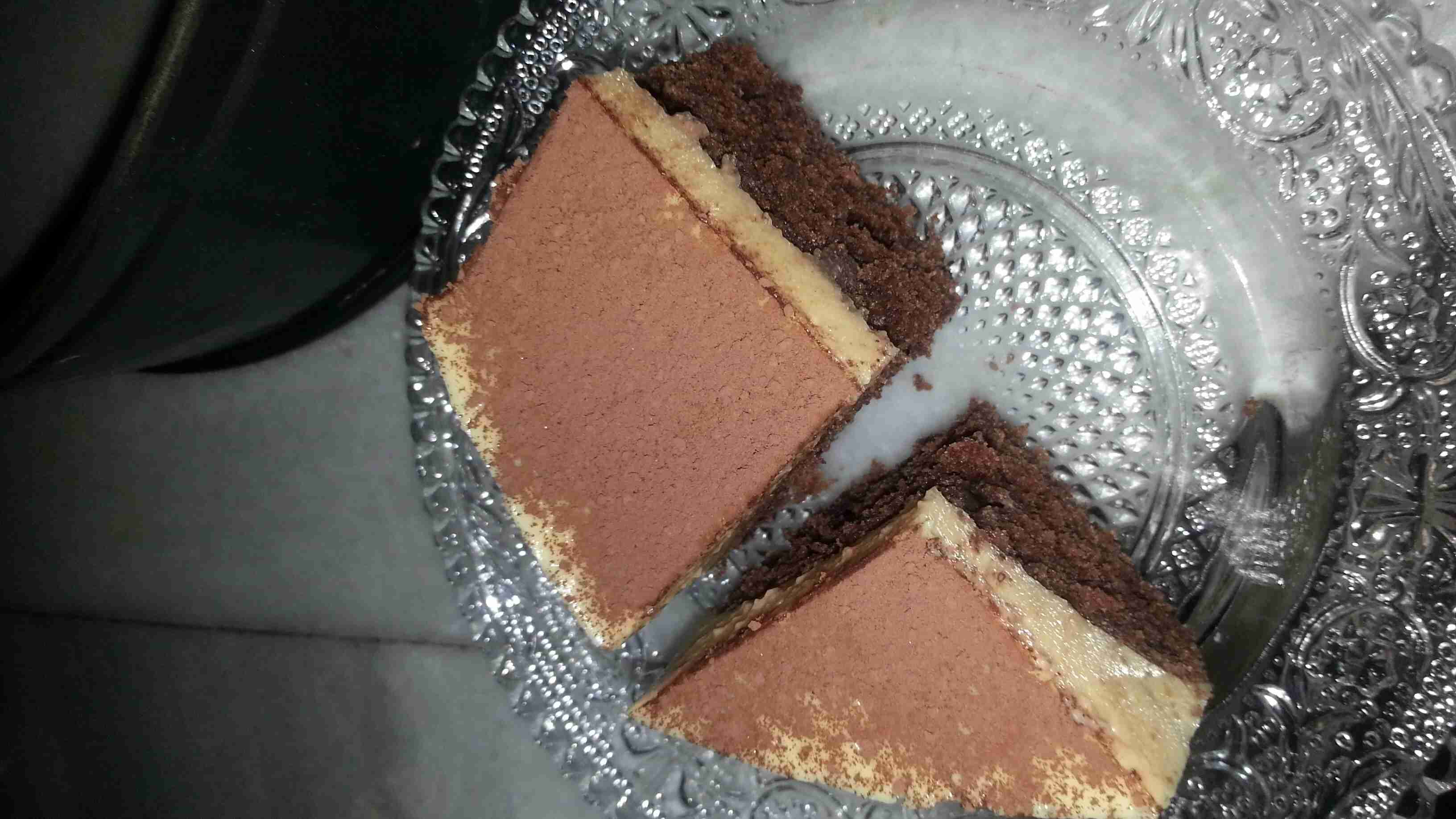 بنعمل الكراميل متل ما هو مكتوب عالباكيت بالتعليمات وبنضيف اله معلقه كبيره نسكافيه ولما يغلي بنطفي عليه وبنحطو بالخلاط وبنضيفله ال18 حبه بسكوت ولما يصير قوامو كريمي بنضيفو فوق الكيكه وبس يبرد بنحطو بالثلاجه وعند التقديم بترشي ع الكيكه كاكاو