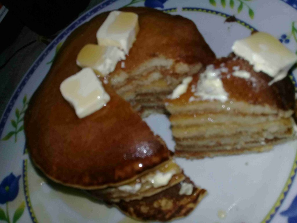 تخلط جميع المقادير بلخلاط حتى تصبح عجينة ناعمه شبيه بخليط الكيك توضع مقلاة تيفال علا نار ونمسحها بمسحة بزبدة خفيفة ناخد مقدار مغرفة من الخليط وتضع داخل المقلاة تترك على نار هأدئة حتى تتكون فقاعات وتاخز اللون الزهبى تقلب على الوجة الاخر حتى تتحمر تترك لتبرد ثم تزيين نوتيلا وعسل والف صحة وهنا