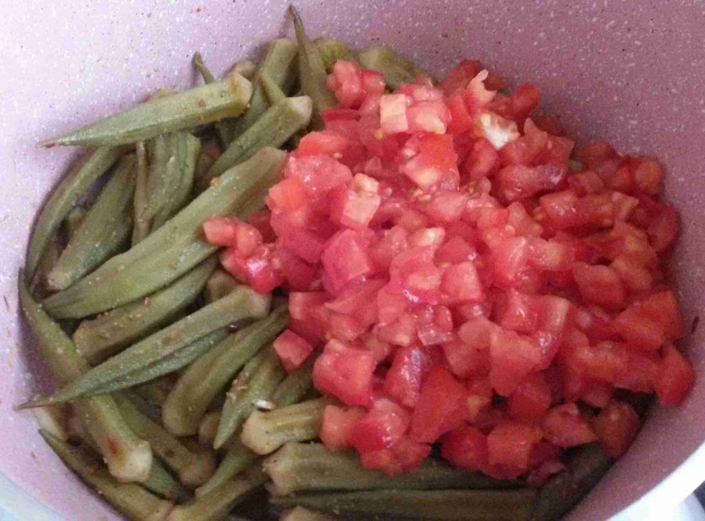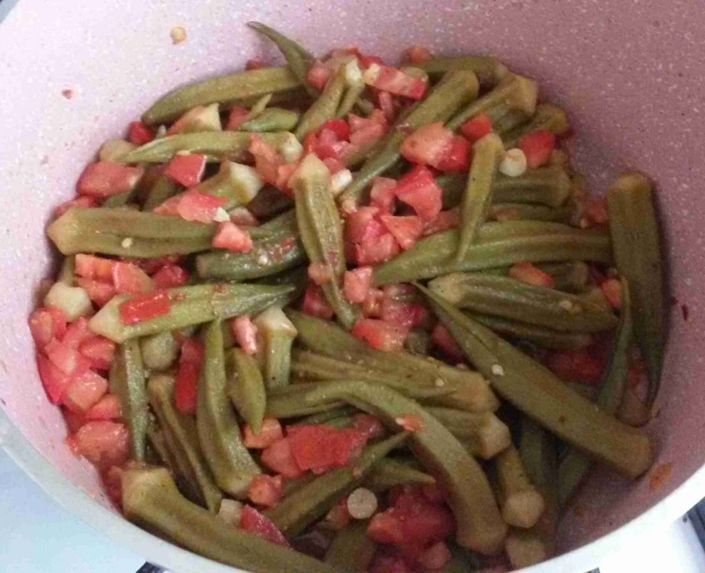 منخلطهم ومنغطيهم لحتى ترتخى البامية منضيف البندورة
