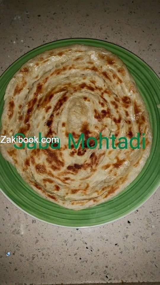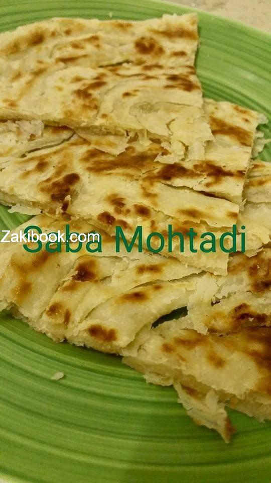 وبعد ما ينضج وجهها الأول نقلبها وندهن الوجه الناضج بقليل من الزبدة وبعدما ينضج الوجه الثاني ندهنه ايضا بالزبدة