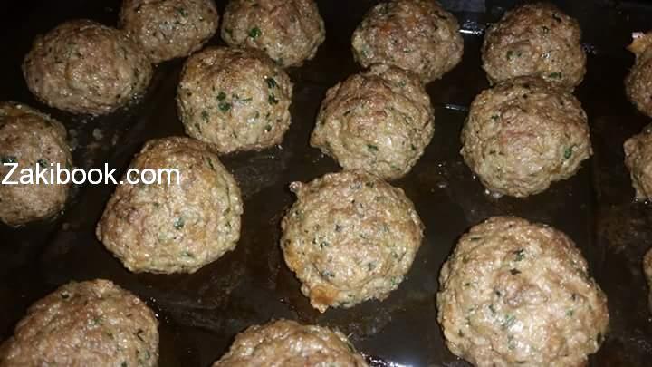 تخلط المكونات ونصنع كرات من اللحم …نشويهم بالفرن بصينية مدهونة … المهم عنا يتماسكوا ويتحمروا عالخفيف