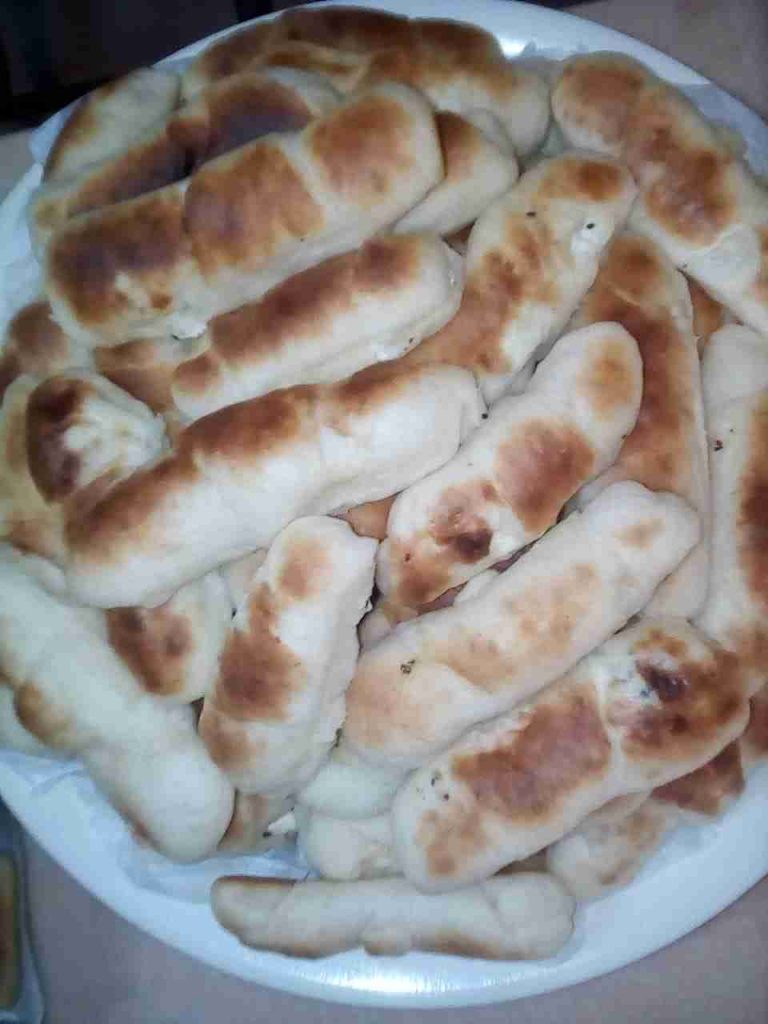 نضع جميع المقادير مع بعض في وعاء عميق ونضيف الماء بالتدريج حتى الحصول على عجينه لينه ومتماسكه في النهايه نضيف لها فنجان قهوة من زيت الزيتون ونتركها تخمر مده 10 دقائق إلى 15 الدقيقه ثم تقطع حسب الرغبه وتحشى بالحشوه المرغوبه جبنه. زعتر. سبانخ.
