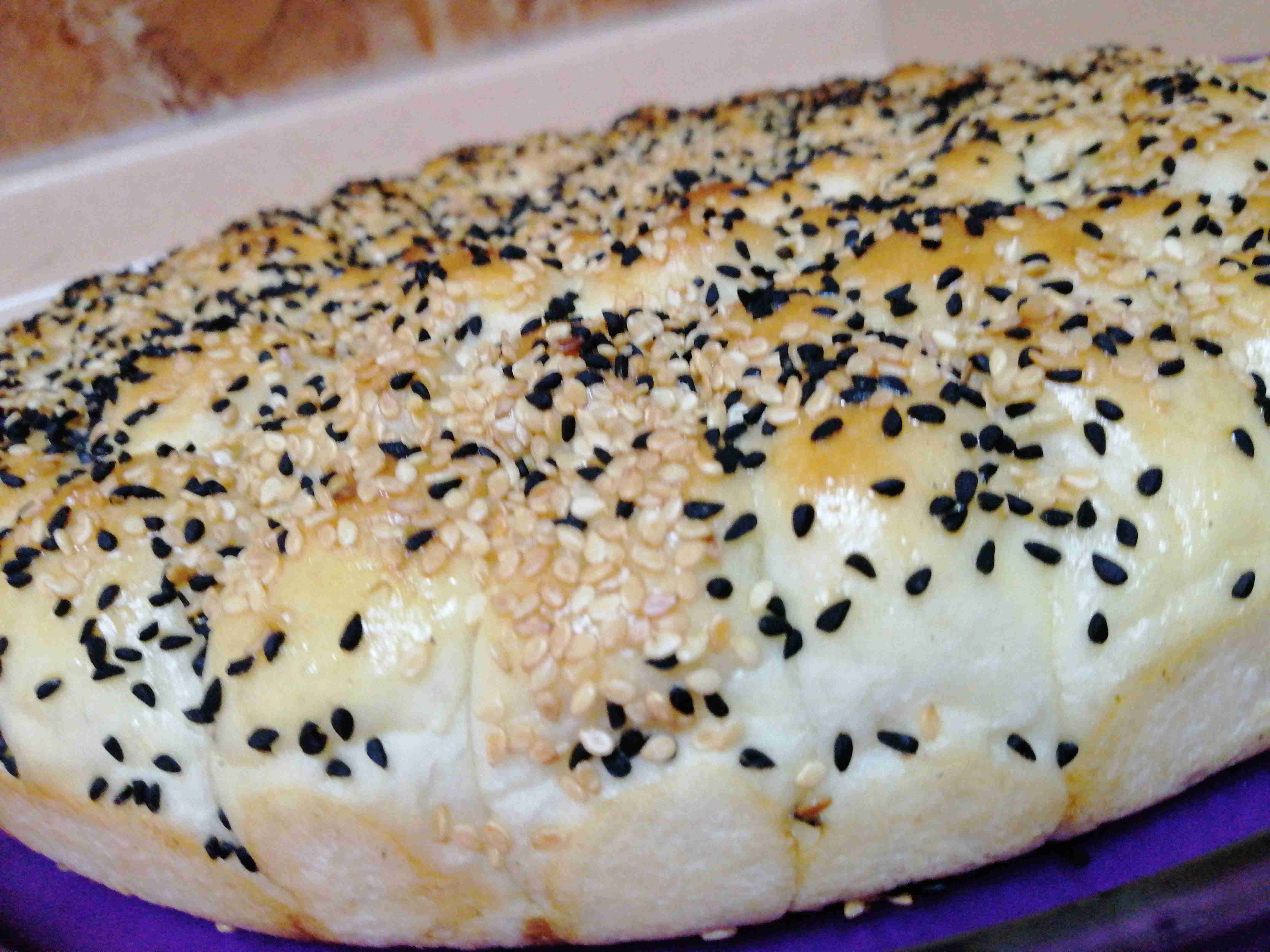 نضع جميع المقادير مع بعض في وعاء عميق ونضيف الماء بالتدريج حتى الحصول على عجينه لينه ومتماسكه في النهايه نضيف لها فنجان قهوة من زيت الزيتون ونتركها تخمر مده 10 دقائق إلى 15 الدقيقه ثم تقطع العجينه إلى قطع صغيره وكل قطعه تحشى جبنه كيري ونعمل هكذا باقي قطع العجين حتى الانتهاء من الكميه المطلوبه للصنيه نصف قطع العجين بجنب بعض وعند الانتهاء نخفق بيضه مع رشه من النسكافيه وندهن الكرات بالفرشاه ثم نرش عليها حبه البركه والسمسم وندخلها إلى الفرن المحماه سابقا حتى الاستواء من الأسفل ثم نحمرها من الأعلى قليلا