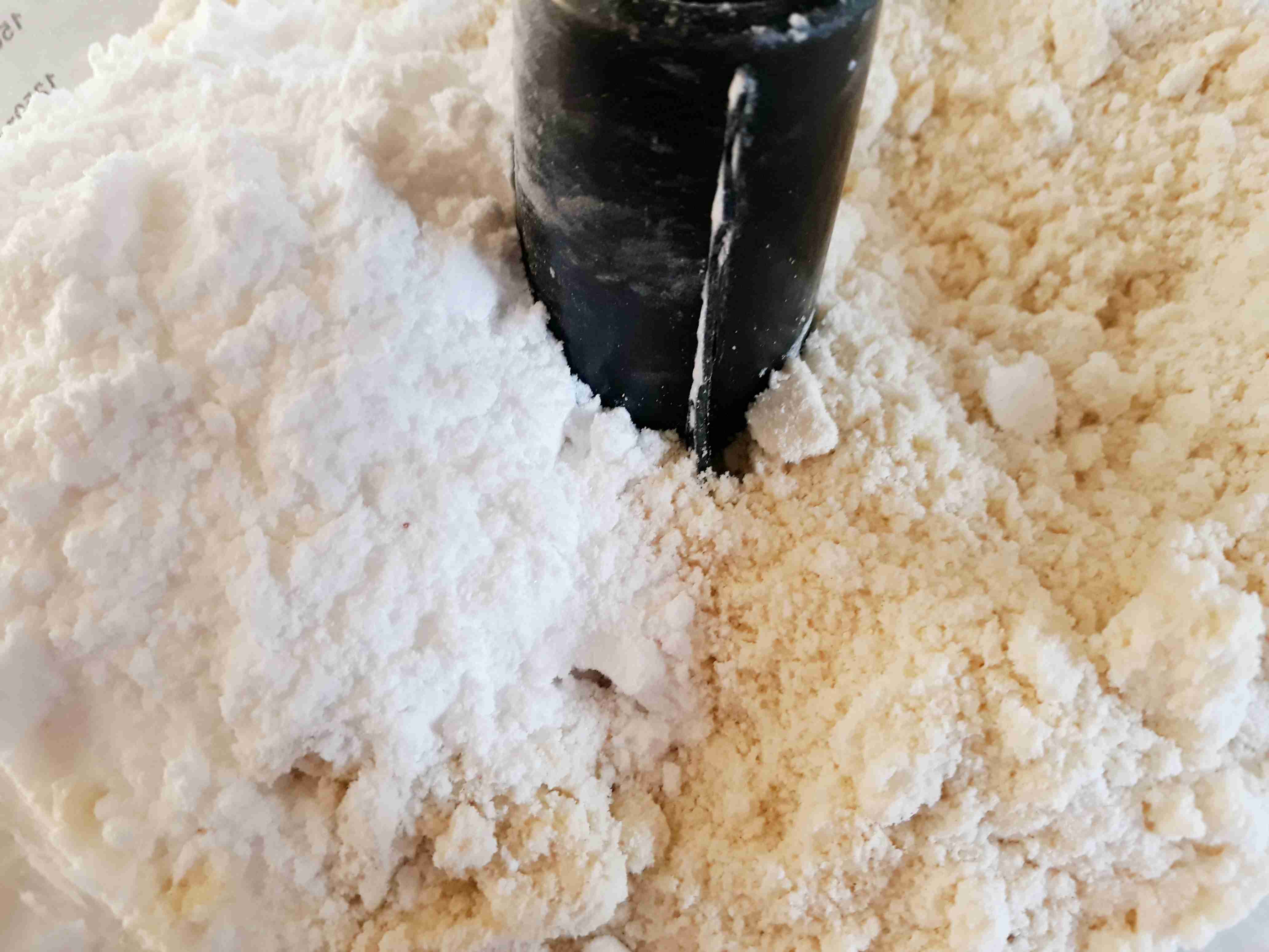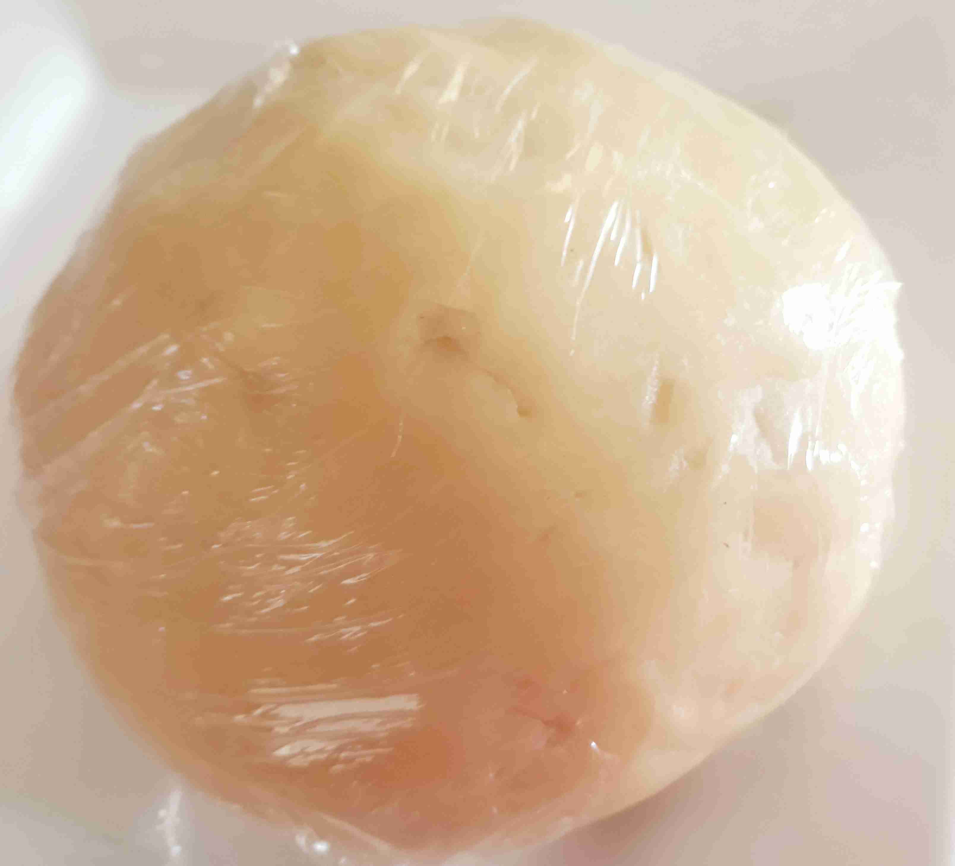 - ربع كوب ماء بارد جداا تقريبا ممكن نحتاج اقل حسب نوع الطحين ولما تلم معنا العجينه