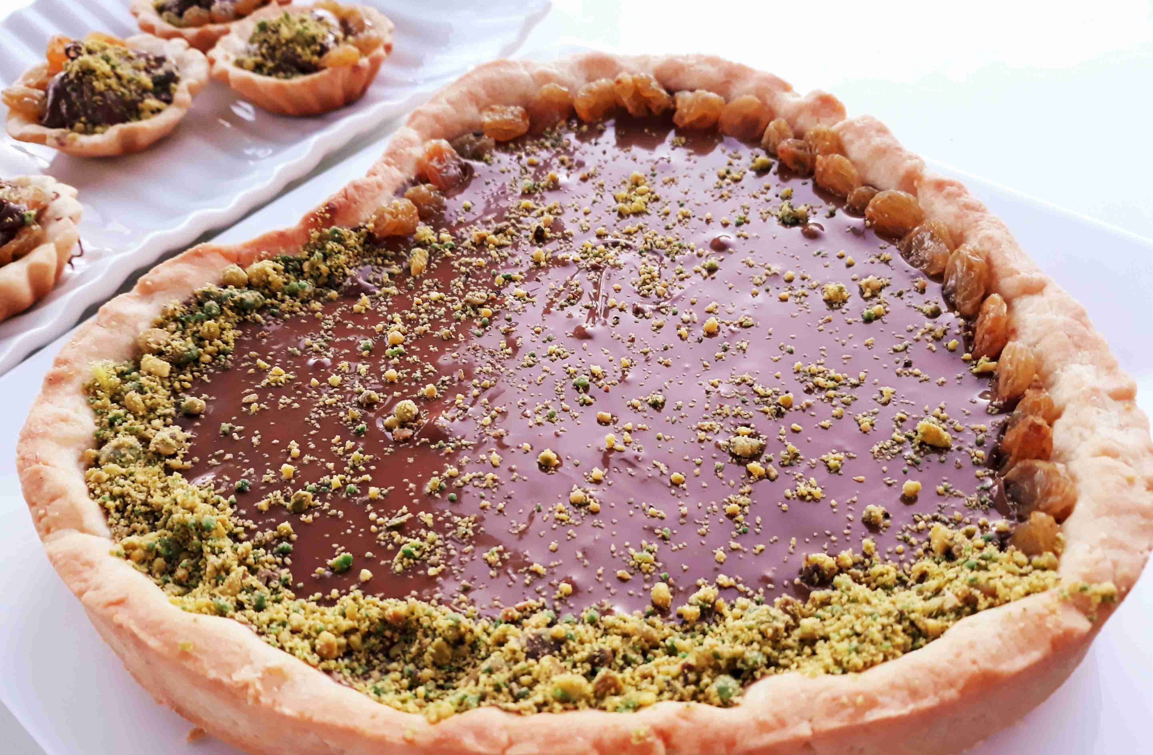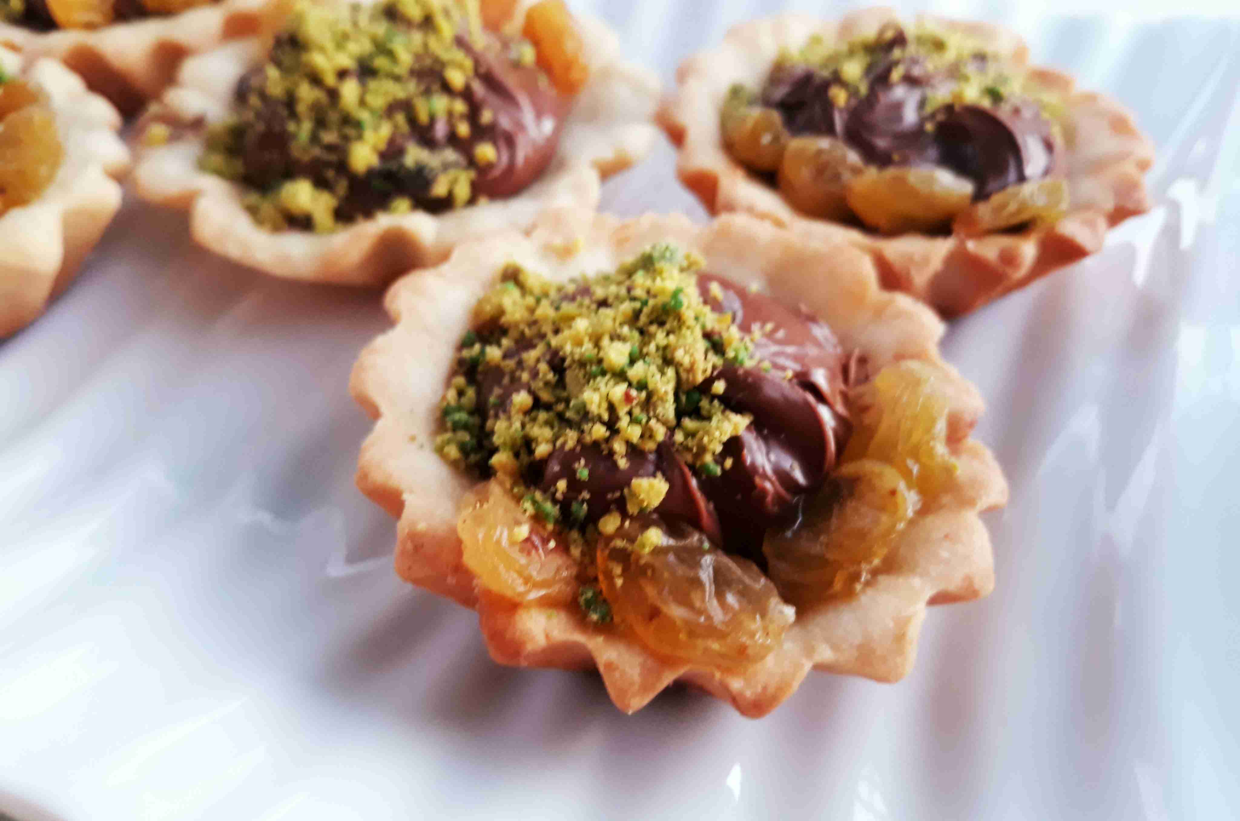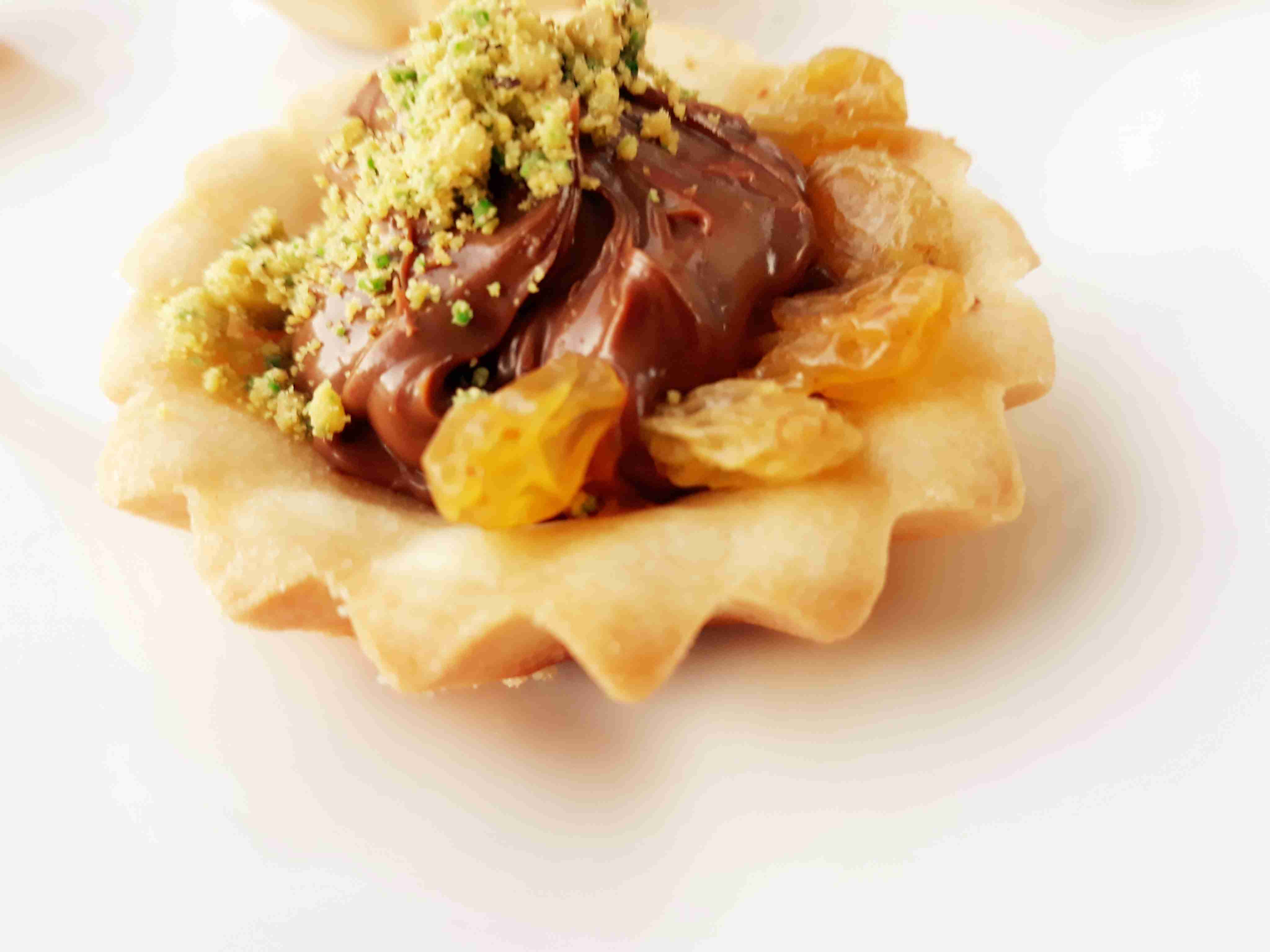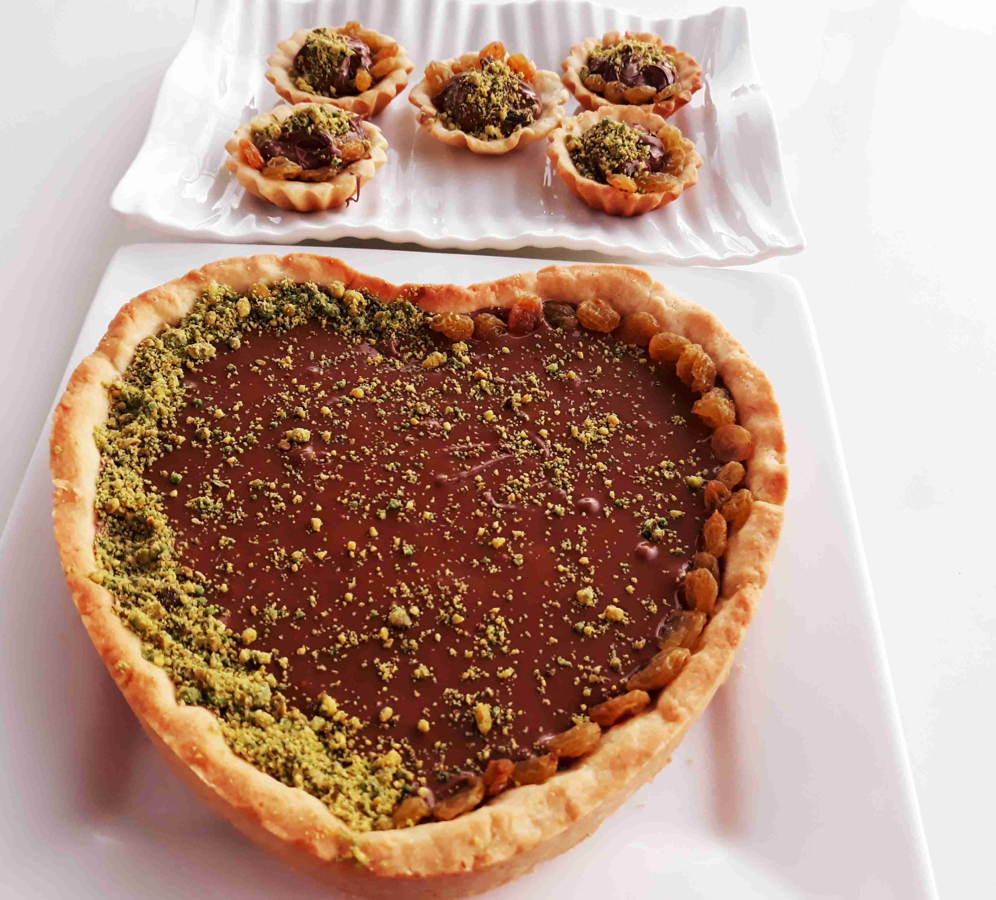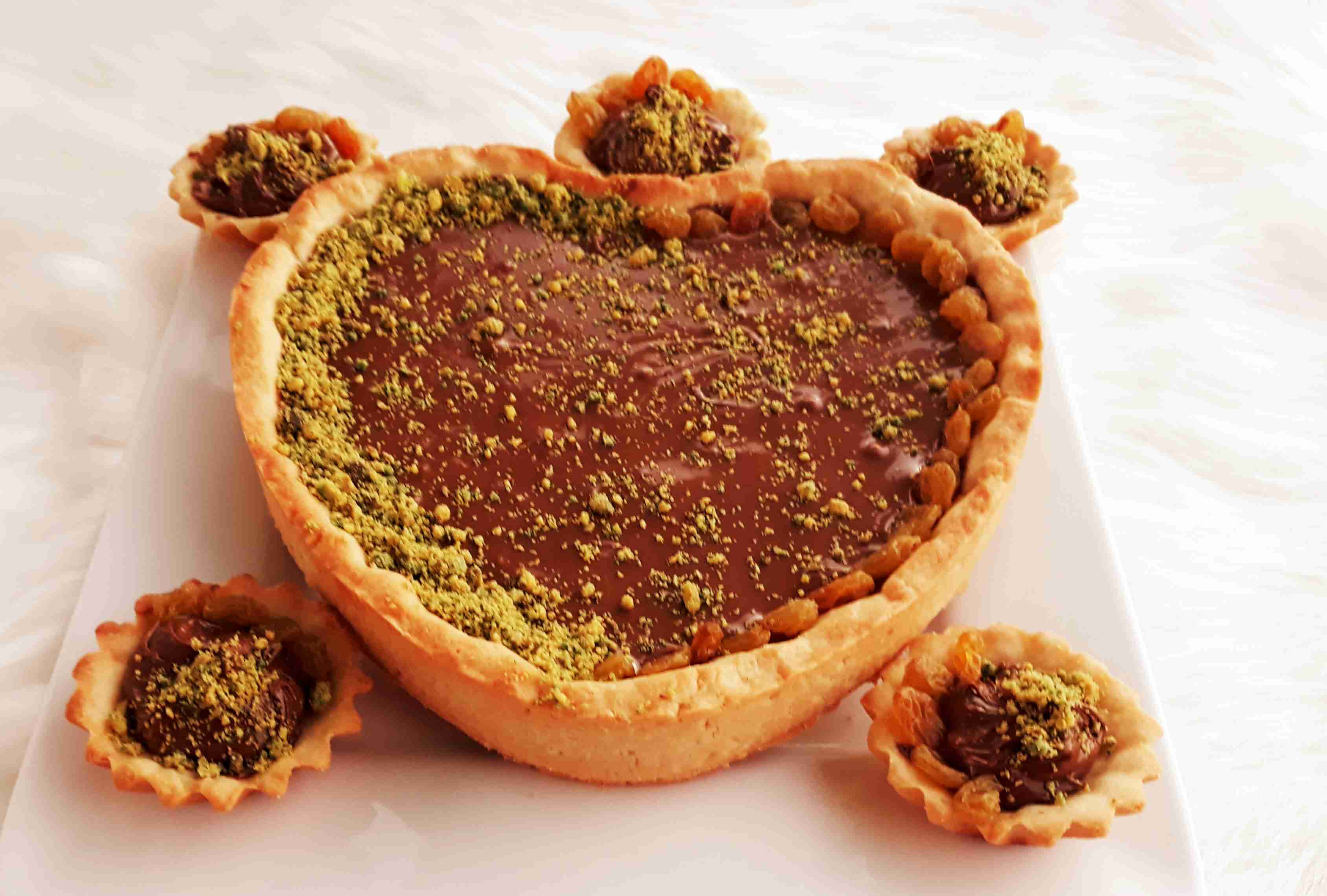 وبنخبز هم بالفرن محمى مسبقا على درجه 180 تقريبا ربع ساعه او اكثر حسب الفرن الموجود عنا او لما نشوف اطراف العجينه صارت ذهبيه بنتركهم يبردو تماما وبعد هيك بنحضر الشوكولاه وبنضعها داخل قوالب التارت الجاهزه وبنزينها حسب الرغبه وتقدم والف صحه وهناا