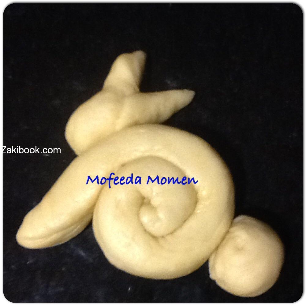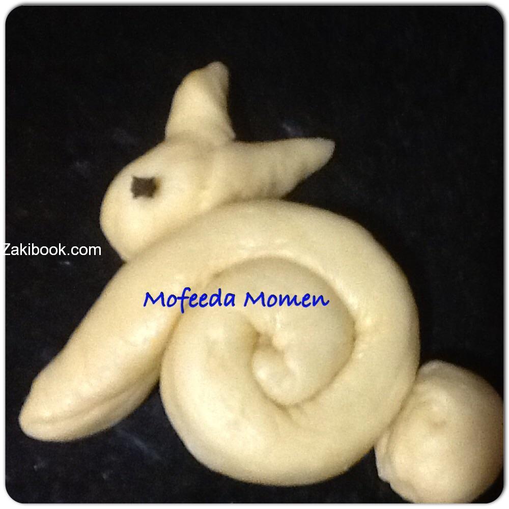 – تشكل علي شكل الارنب وتترك تخمر لمدة ساعة
