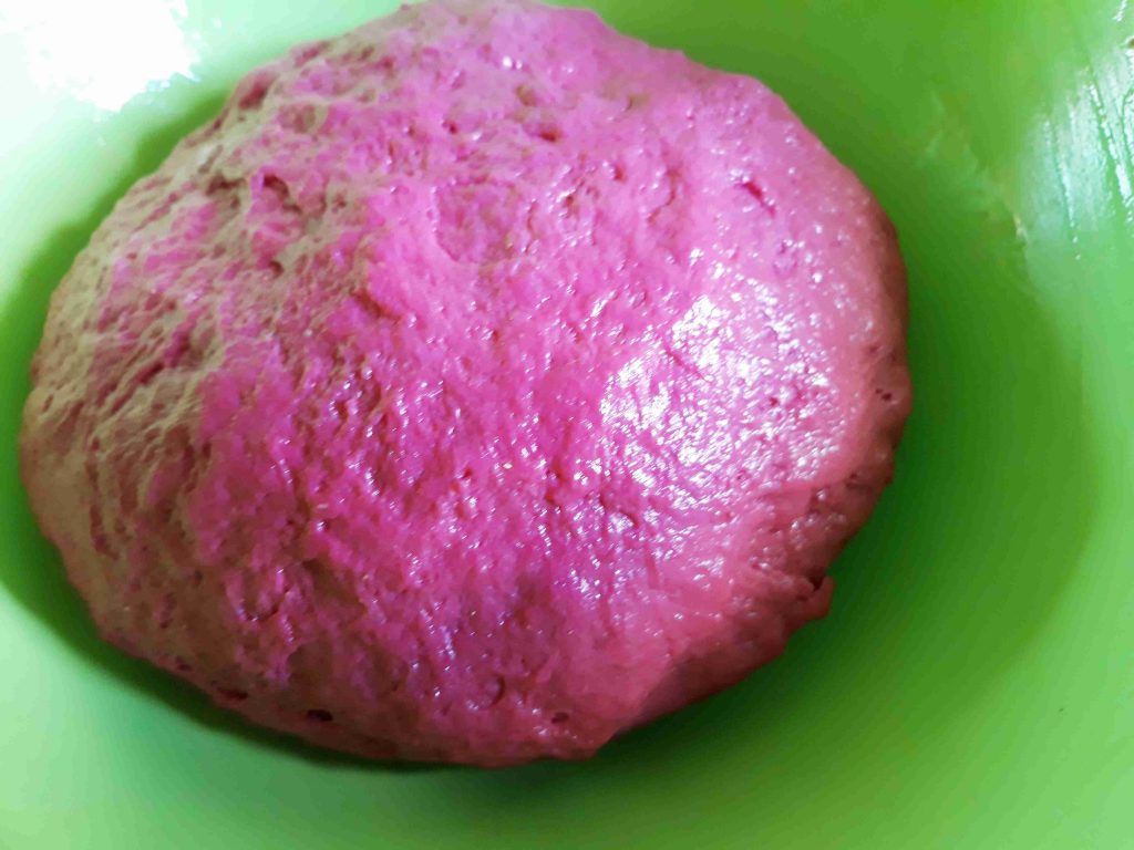 نفس الطريقه بس بنعجنها بماء سلق الشمندر