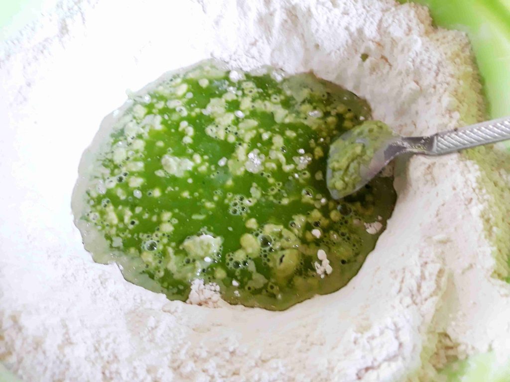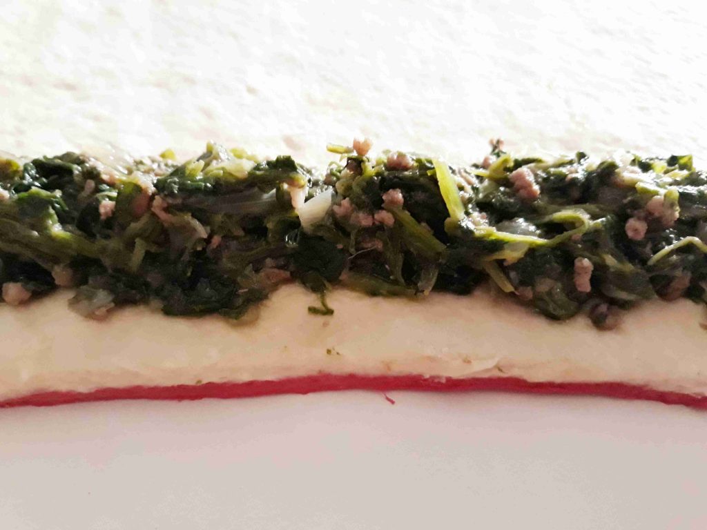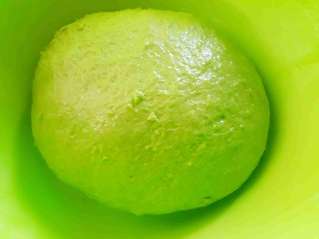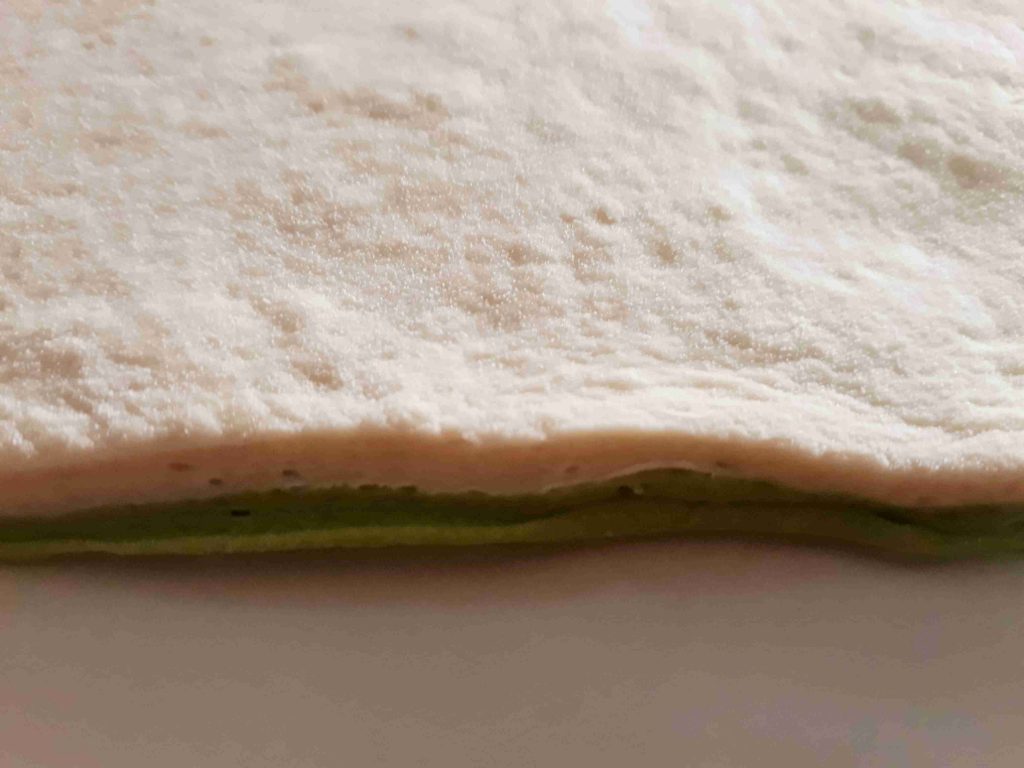العجينه الثالثه بنفس الطريقه الاولى ولكن بنعجنها بماء سلق السبانخ وبنغطيها وبنتركها تخمر