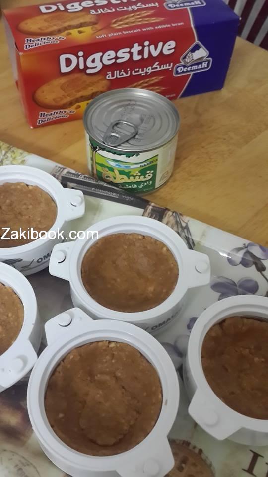 الطبقه الاولى بسكوت مطحون نعجنه مع ملعقتين قشطه