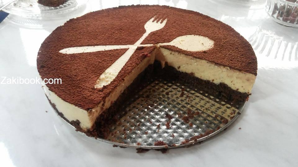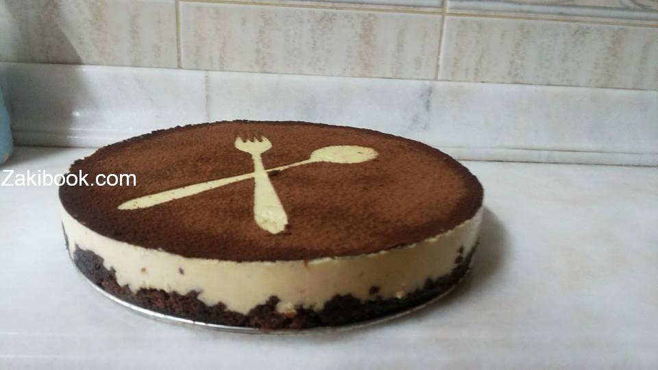 كيك شوكولاه نضعه بقالب التشيزكيك, مقادير  كيكة الشوكولاه 4 بيضات مع كاسة ونصف سكر وملعقة صغيرة فانيليا وبرش برتقالة نخلطهم مع كاسة حليب و3 ارباع الكوب زيت درة و4 ملاعق كبيرة كاكاو وكاستين طحين وملعقة كبيرة باكمبودر
