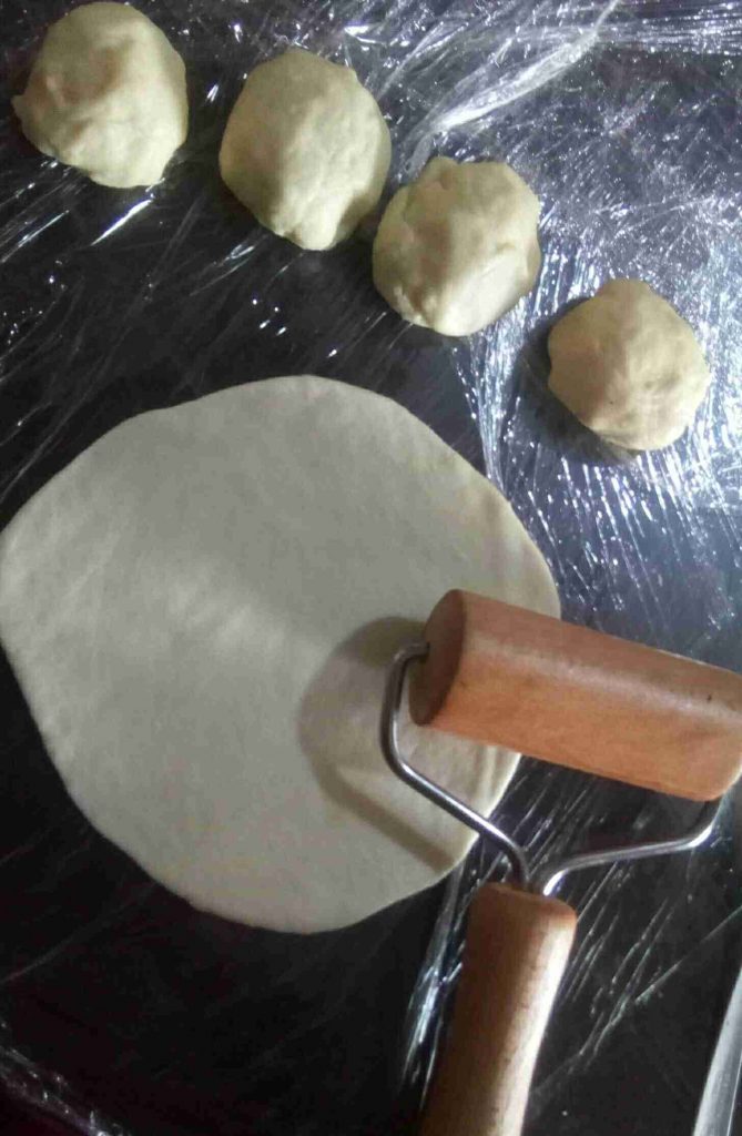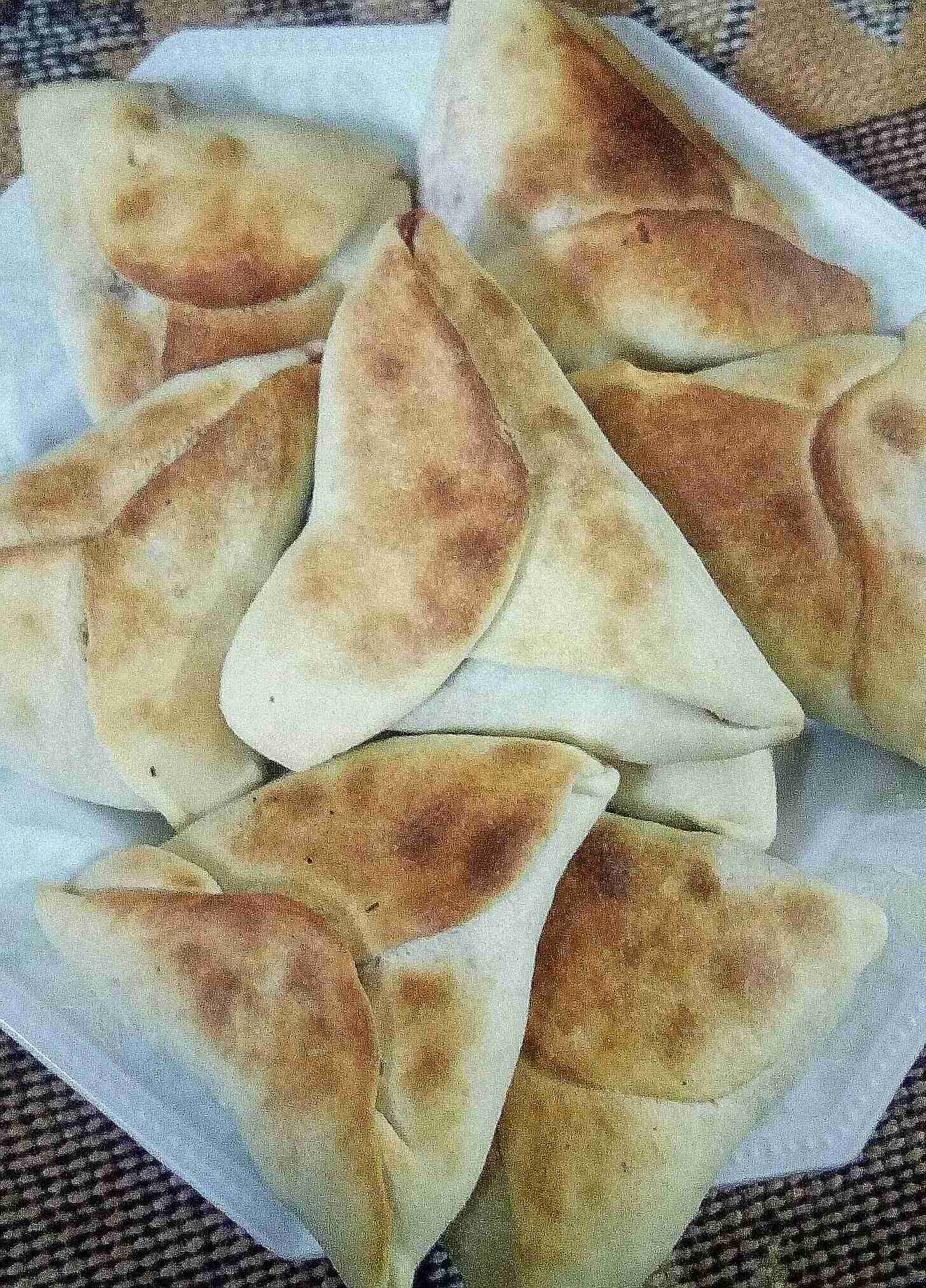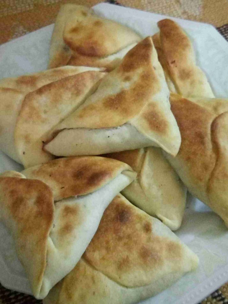 نعمل العجينه بخلط كوبين طحين مع كوبين ماء دافئ مع ملعقتين خميرة نتركها عشرة دقائق في مكان دافئ ،،، بعد العشر دقائق نضع عليها نصف كوب زيت وثلاث كاسات طحين و ملعقتين حليب وتعجن جيدا،،، ونبدأ بتقطيع العجينه كرات ،، ونبدأ بالحشي ونخبزهم في الفرن من اسفل ونحمرهم من فوق ،،،،