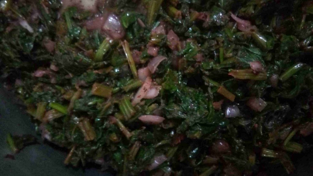نضع السبانخ المفروم مع البصل والسماق والملح والزيت وعصير الليمون او دبس الرمان في طنجرة على النار قليلا وتحرك المواد ونطفي النار ،،،