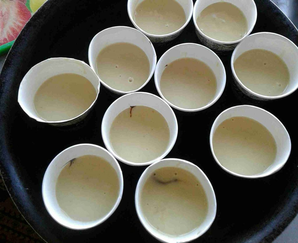 – نضع الأكواب في صينية مناسبة وندخلها الفرن من ( ١٥ – ٢٠ ) دقيقة .