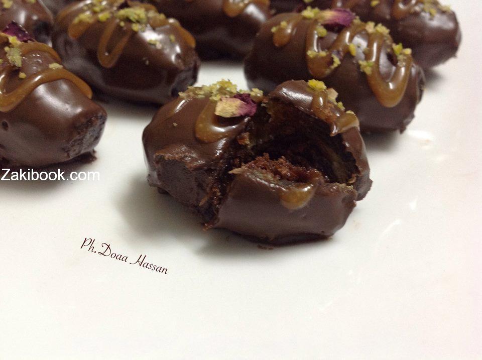تمراتي حشيتهم كيك مفتفت وتوفي ومكسرات وغلفتهم بلشكولاتة ^^