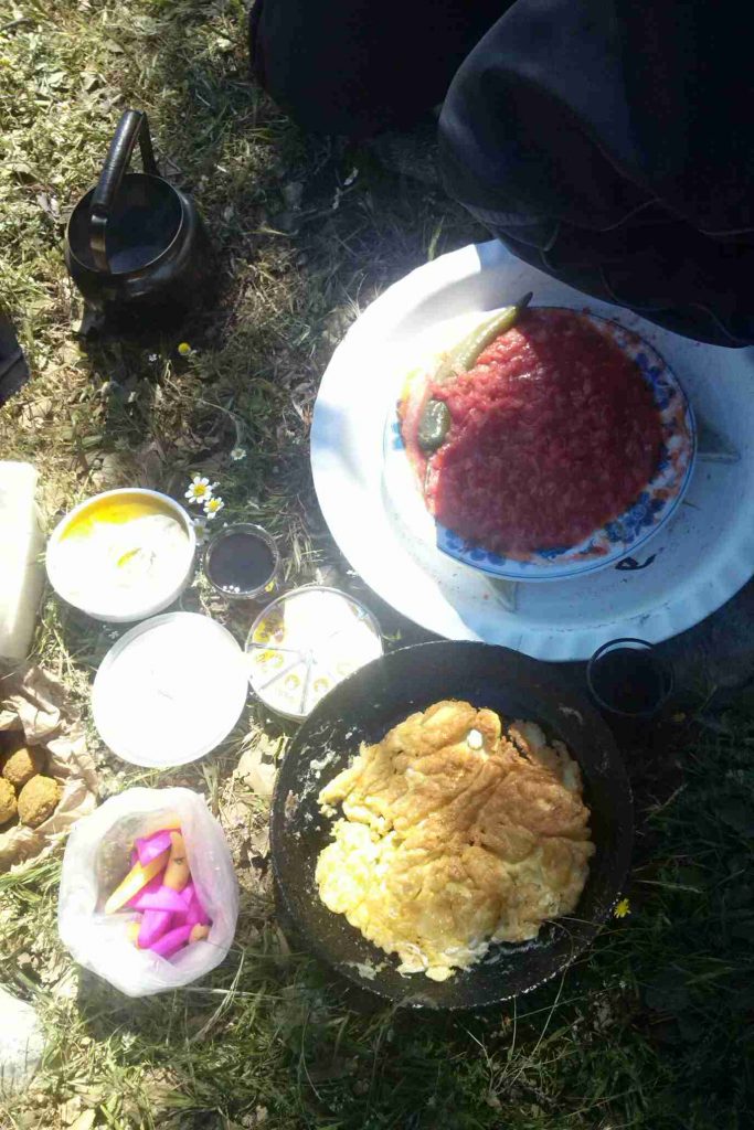 الفطور بيتضمن قلاية بندورة عالحطب وبيض وجبنة وشاي