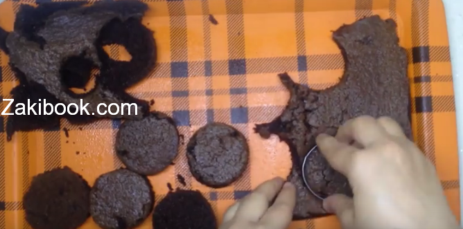 – نترك الكيك يبرد, ونقطعه إلى دوائر صغيرة, بواسطة طرف كوب أو أي فنجان.