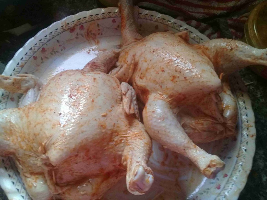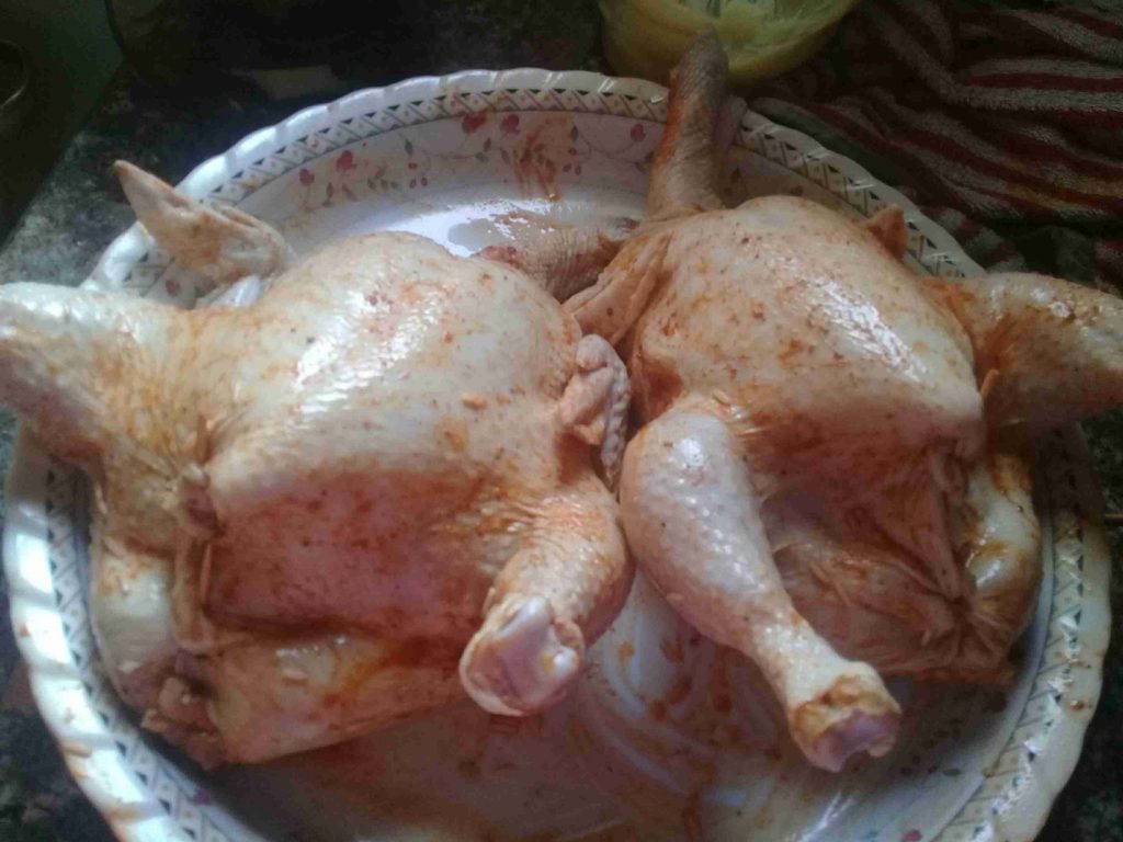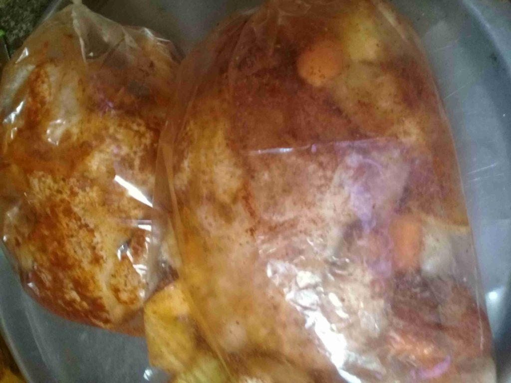 اول اشي بنقع جاج اقل اشي يوم كامل او بليل بنقعها بخل ملح ليمون وزيت زيتون بغلفها بنايلون لتاني يوم بغسلها وبنشفها بدهنها سمنه وزيت من برا وجوا … الحشوة على الغاز كاسه رز بسمتي بزيلا وجزر وبهارات الكبسه بفلفلها شوي بس تبرد اعبي دجاج واسكرها بعود سنان بحطها عجنب بحضر الكياس وبلهرهن من برا مع رشه ملح بحطهن بلكيس الحراري وعلى الفرن بصنيه فيها كاستين مي لساعتين وبشق الكيس وبشويها بقدمها جنب لبن وسلطه ورز كبسه